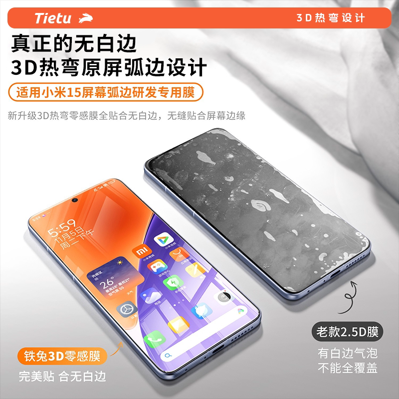 铁兔零感膜适小米17钢化膜15 pro超声波指纹秒解锁Xiaomi手机贴膜新款超薄超灵敏3D热弯无黑边全屏覆盖max膜