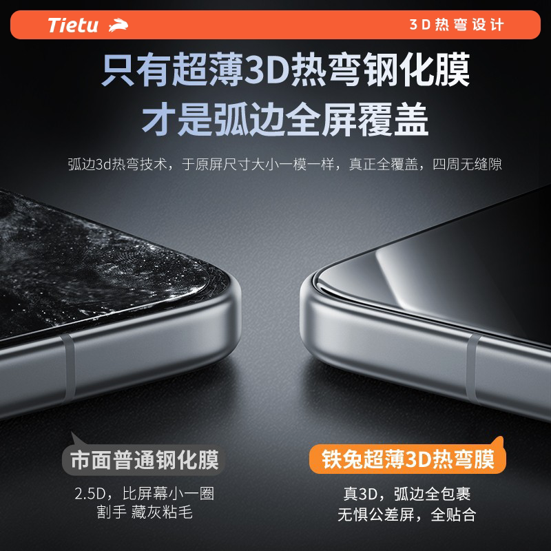 铁兔【3D热弯全屏幕覆盖】零感膜适用苹果17promax手机贴膜iphone16pro max超薄增透15plus保护膜防摔新款pm