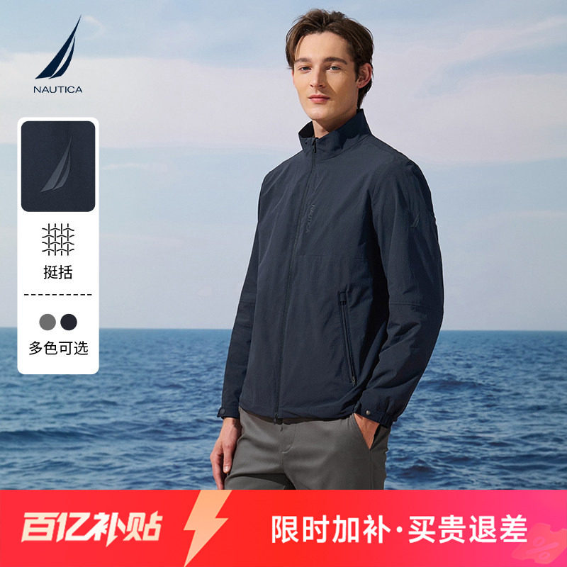 NAUTICA/诺帝卡男装25秋冬休闲挺括登山呢多口袋立领夹克薄外套