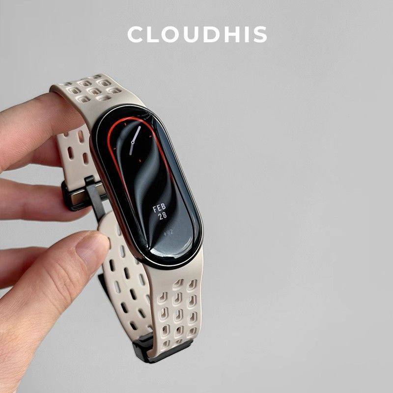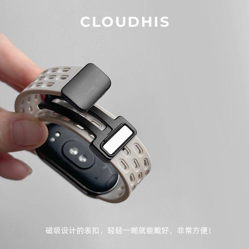 适用小米手环9表带8磁吸折叠扣洞洞腕带NFC运动智能xiaomi八九女生透气表链男生小清新新款夏季时尚表链