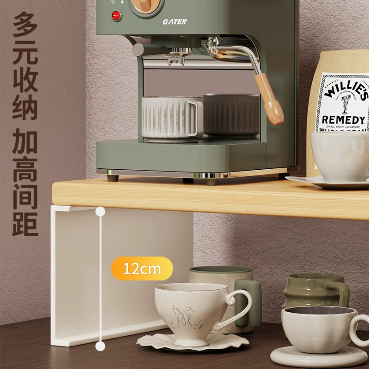桌面杯子收纳架茶具架办公室小型咖啡机摆放台水杯收纳置物架加高