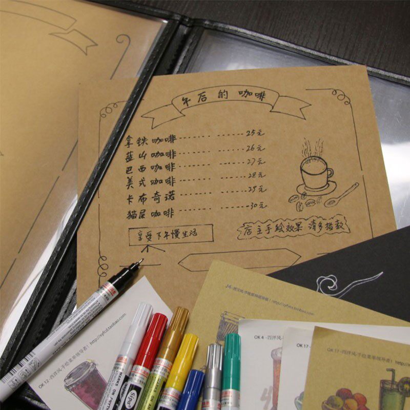 防水手绘牛皮纸菜单本创意带插画西式菜谱点菜单插页式价目表
