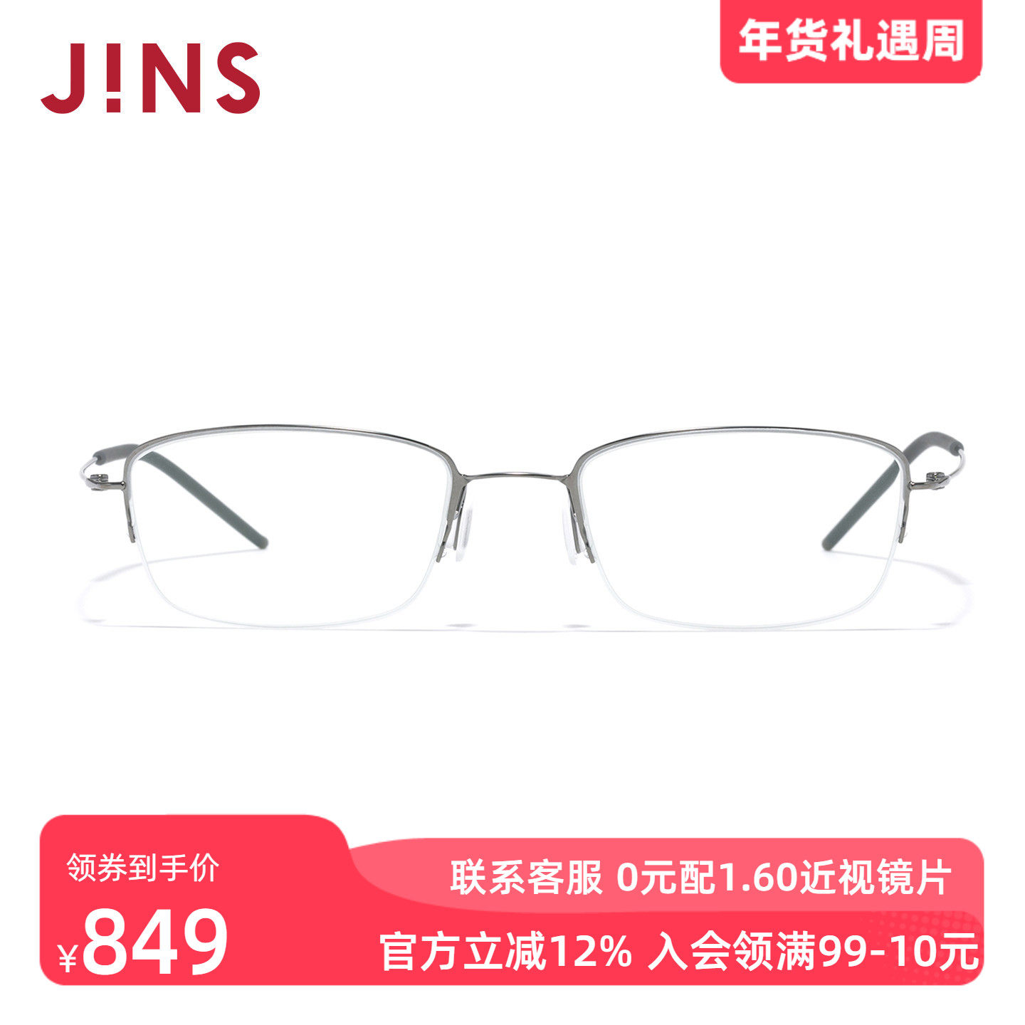 JINS睛姿钛框架轻量窄方形半框近视眼镜男女可加配镜片UTN25S079