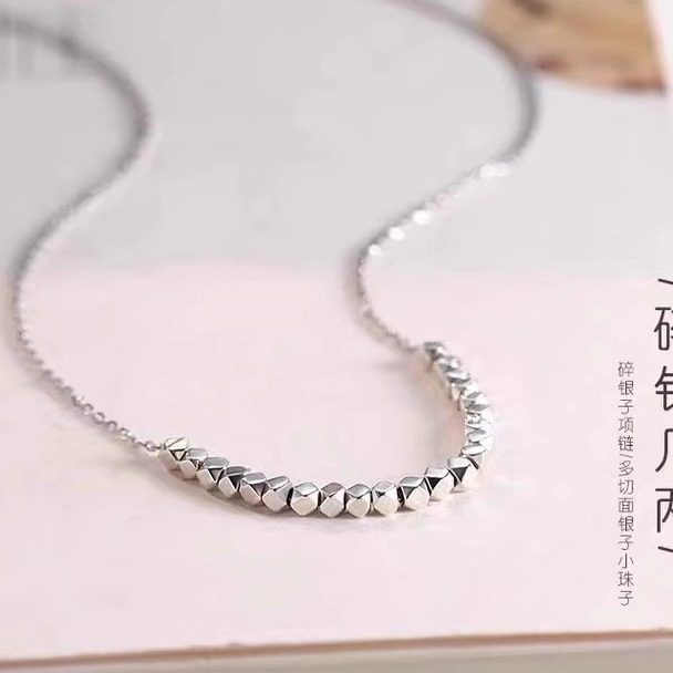 美梓珠宝18K黄金色梅花项链手工链蕾丝镭射金球素金仙女锁骨链K白