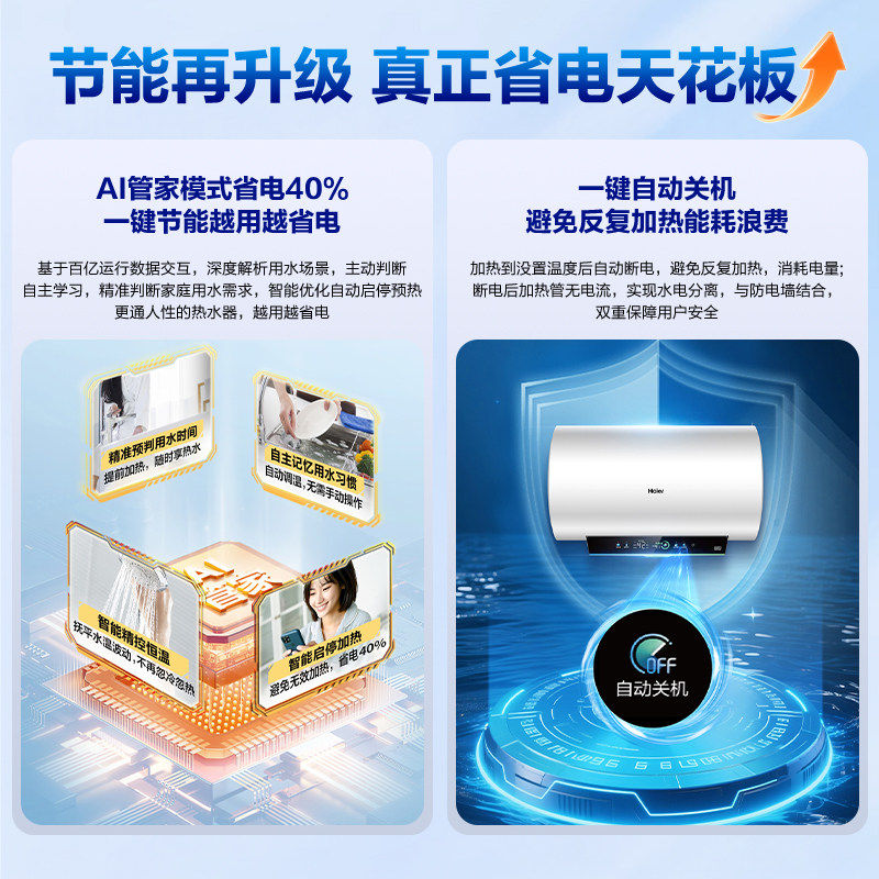 国补海尔电热水器60升储水式洗澡家用80L一级能效AI节能洗PFA3Pro