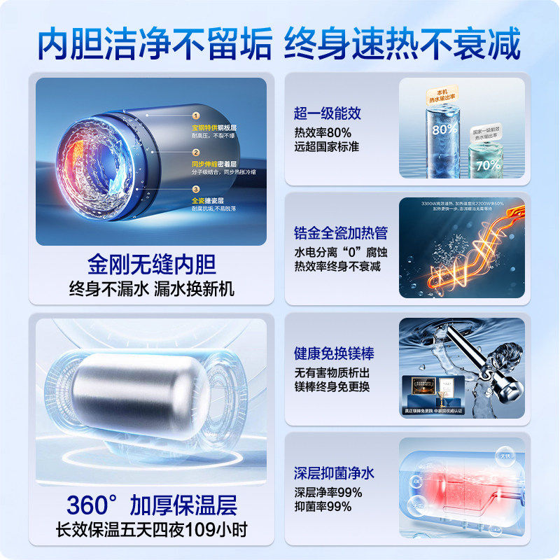 金刚内胆耐用抗腐,健康镁棒终身免换