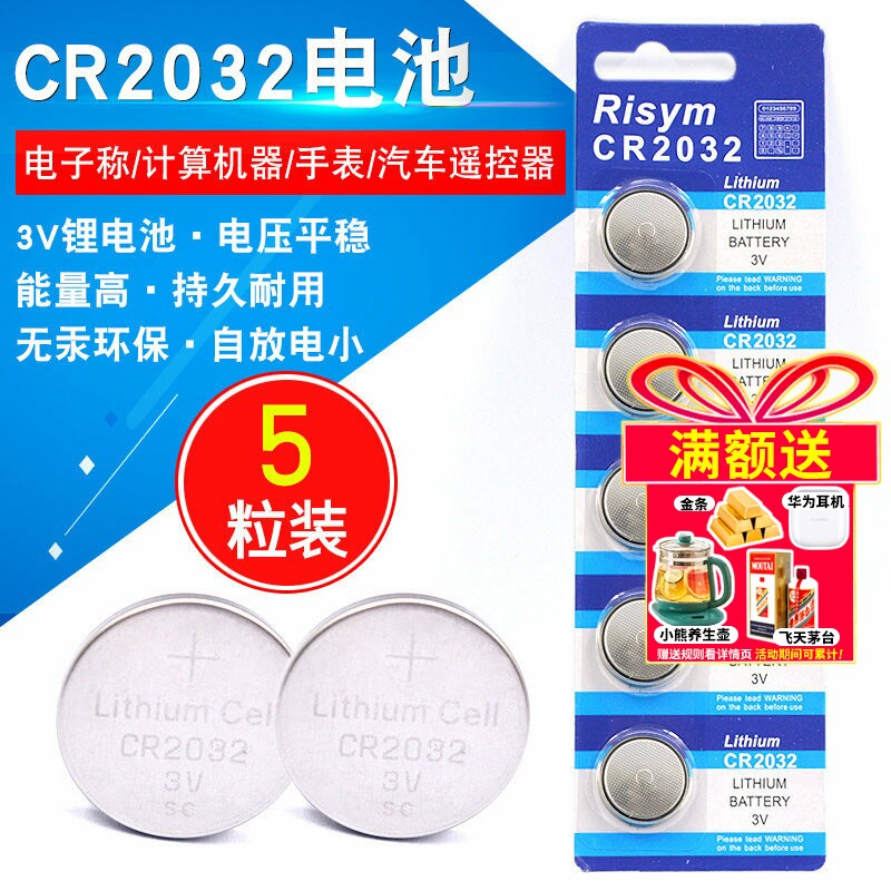 3V纽扣电池CR2032电脑主板主机电子称电子计算器人体称体重秤电子配件汽车遥控器钮扣电池通用2032电池(5个)