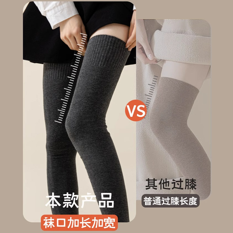 羊毛过膝袜子女款秋冬季加绒加厚长筒袜压力瘦腿保暖大腿袜jk长袜
