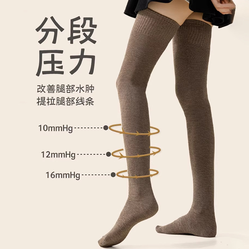 过膝袜子女秋冬羊毛长筒袜加厚保暖护膝大腿袜纯棉压力显瘦高筒袜