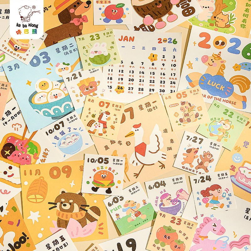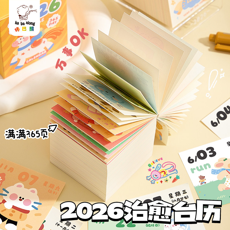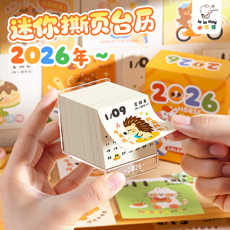 治愈台历2026年迷你翻页涂鸦日历儿童卡通可爱桌面摆件手账贴纸学生自律打卡月历高颜值创意插画日程计划表