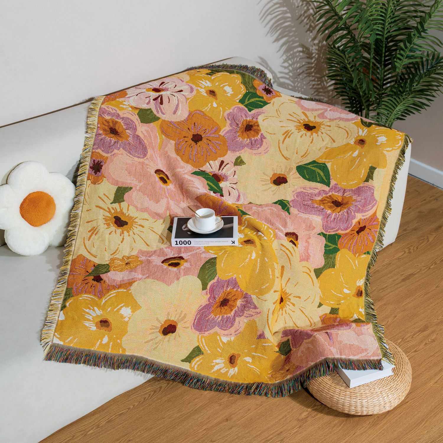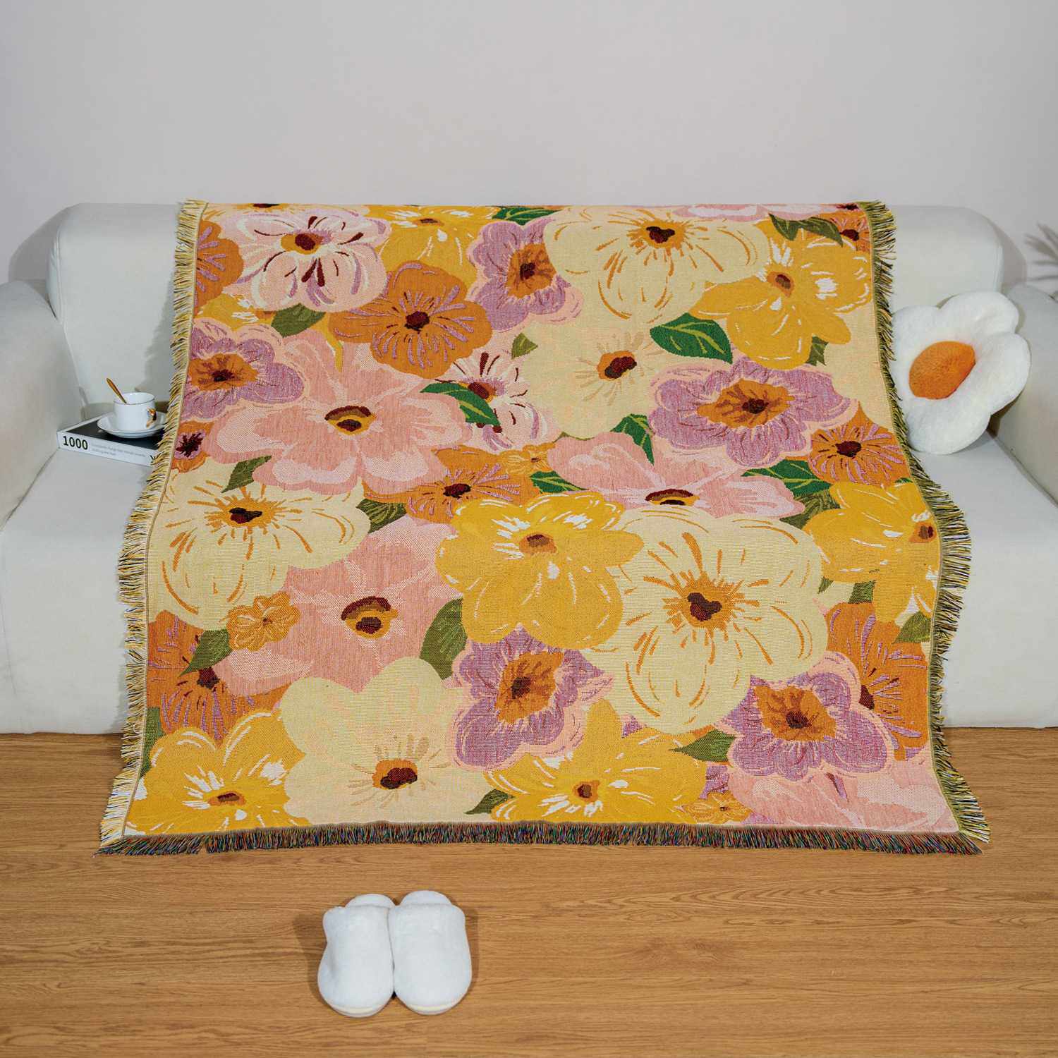 跨境花卉艺术挂毯多功能户外野餐垫办公室午睡毯提花线毯现货