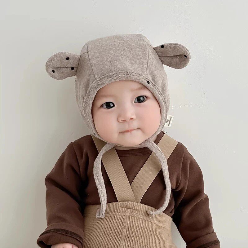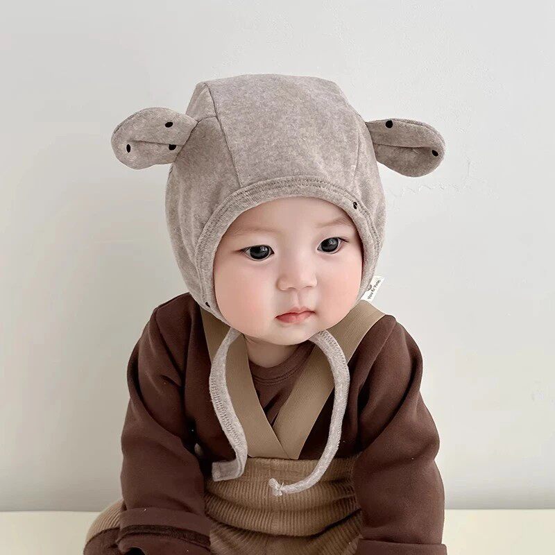 十月结晶粒粒阳光婴儿帽子一体加厚帽子秋冬季保暖护耳帽宝宝冬帽