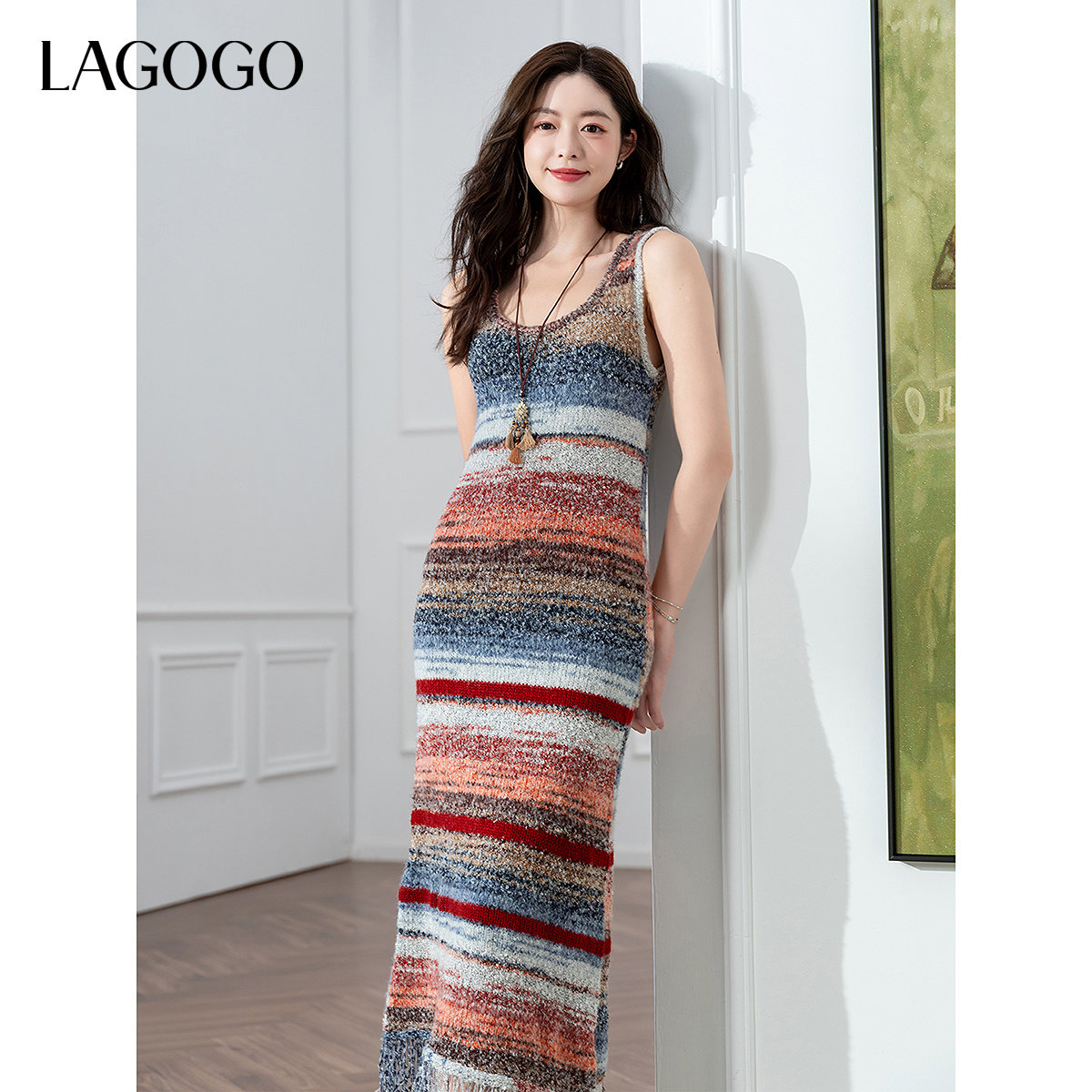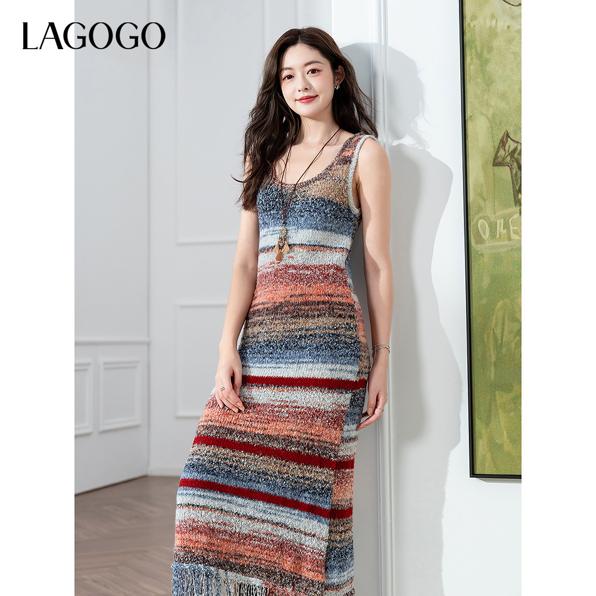 LAGOGO明媚穿搭彩虹连衣裙女拉谷谷2026春新款川西废土风背心裙子