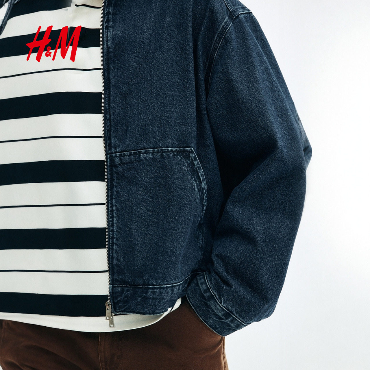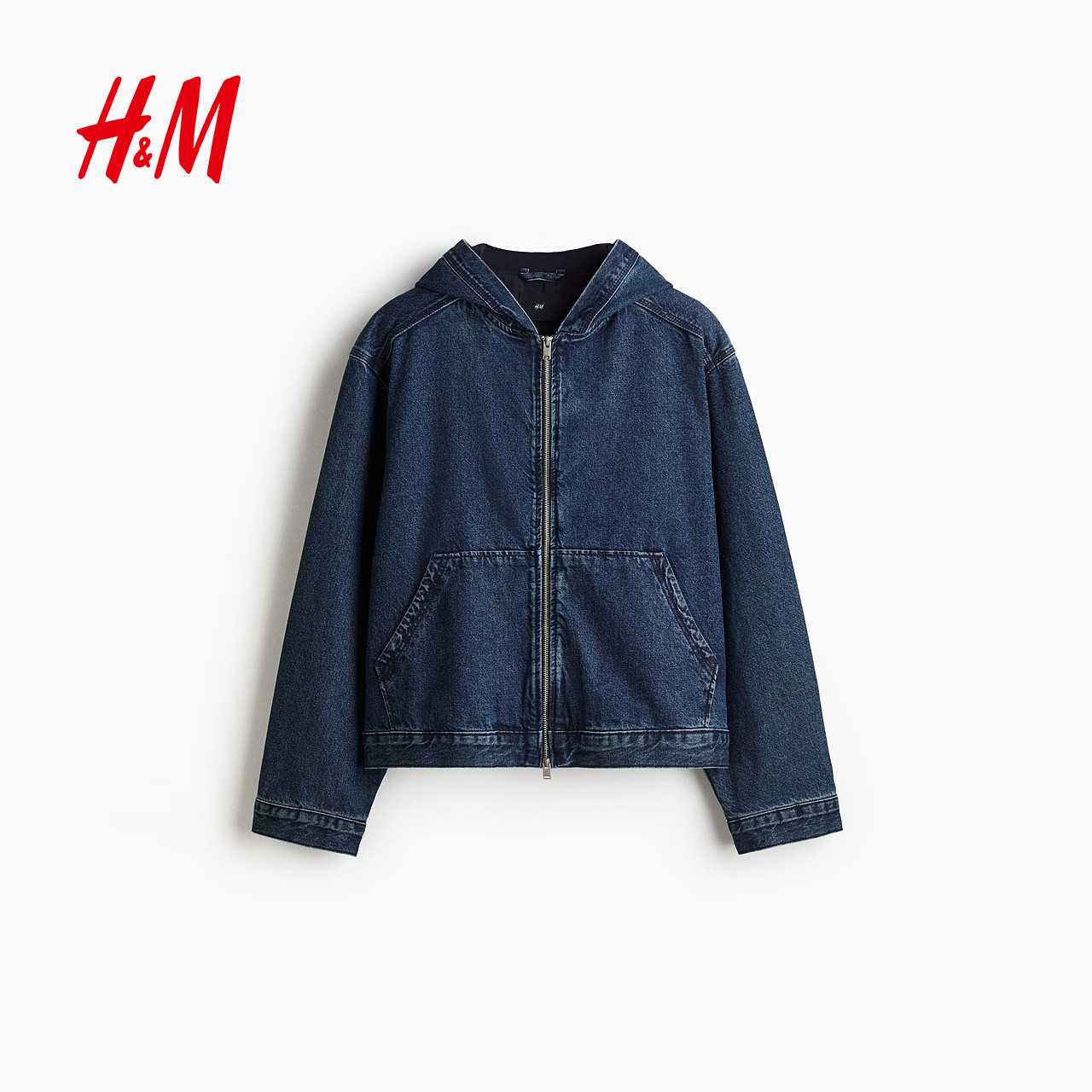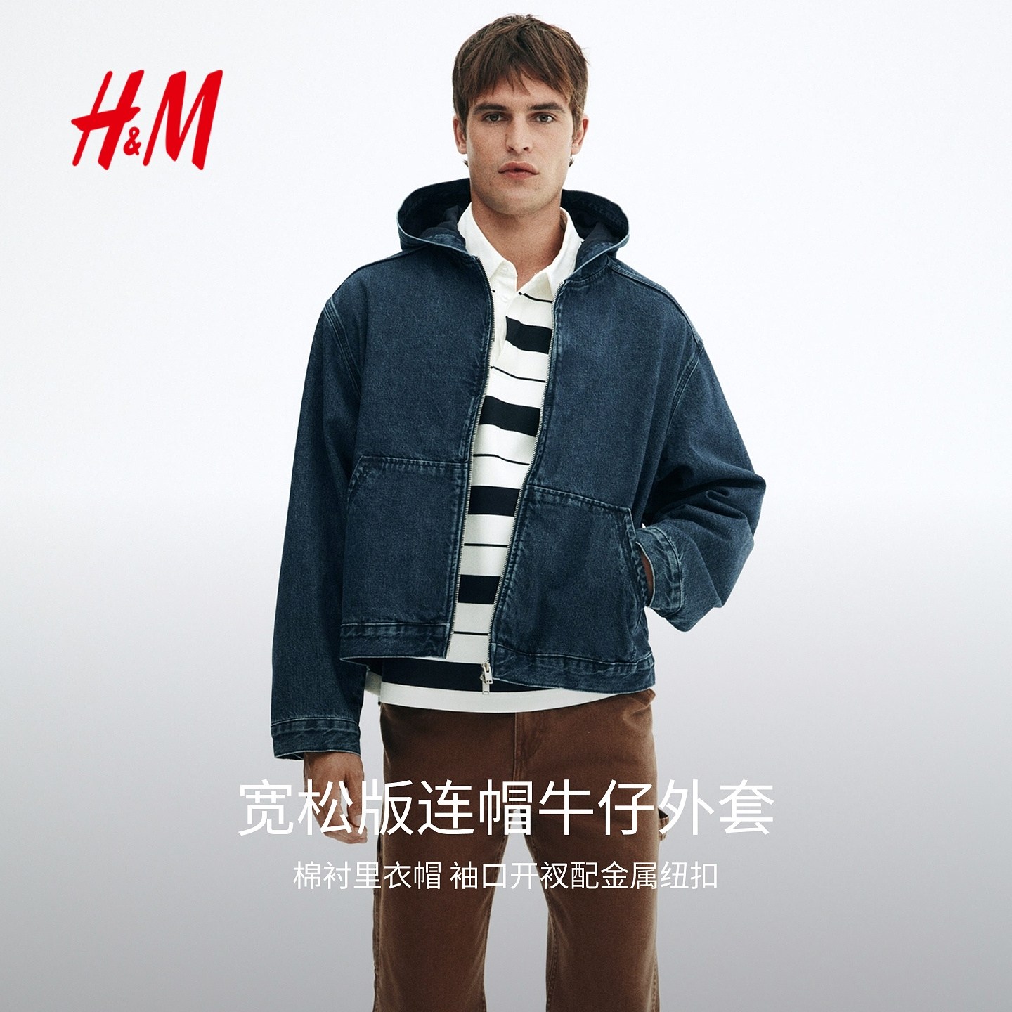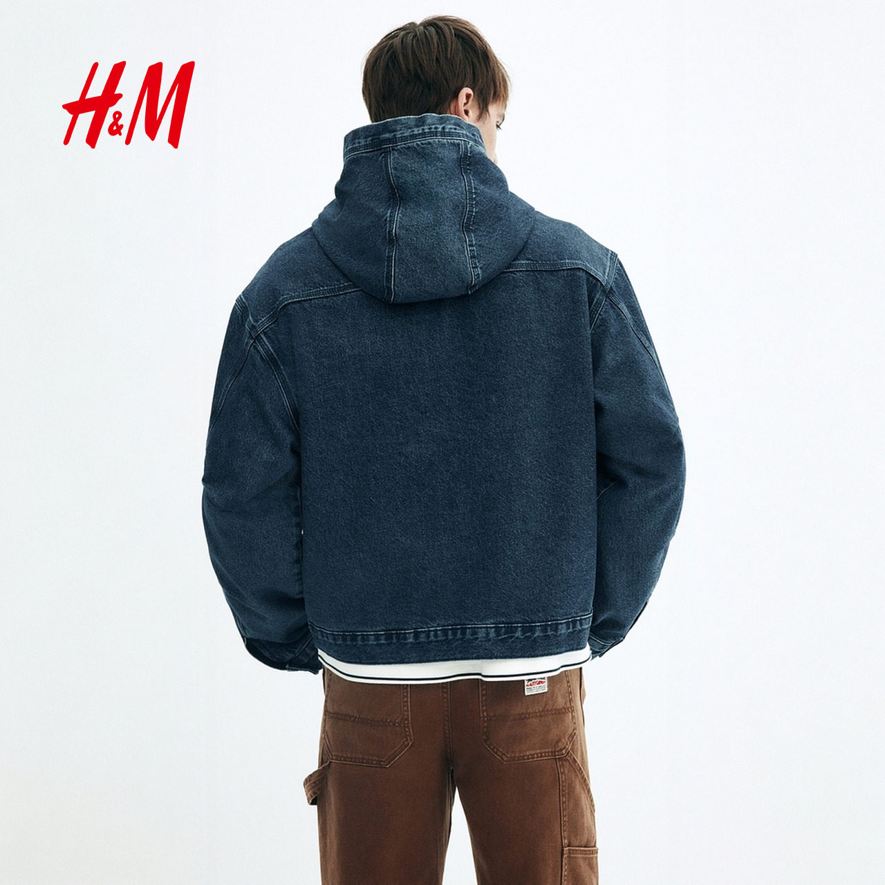 HM冬季男装宽松版型连帽牛仔外套1305036