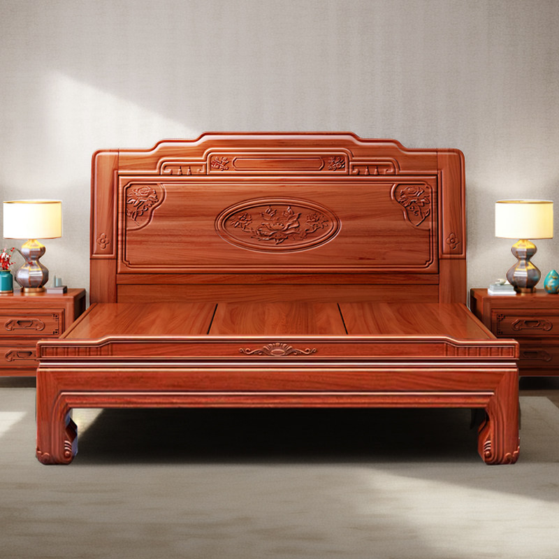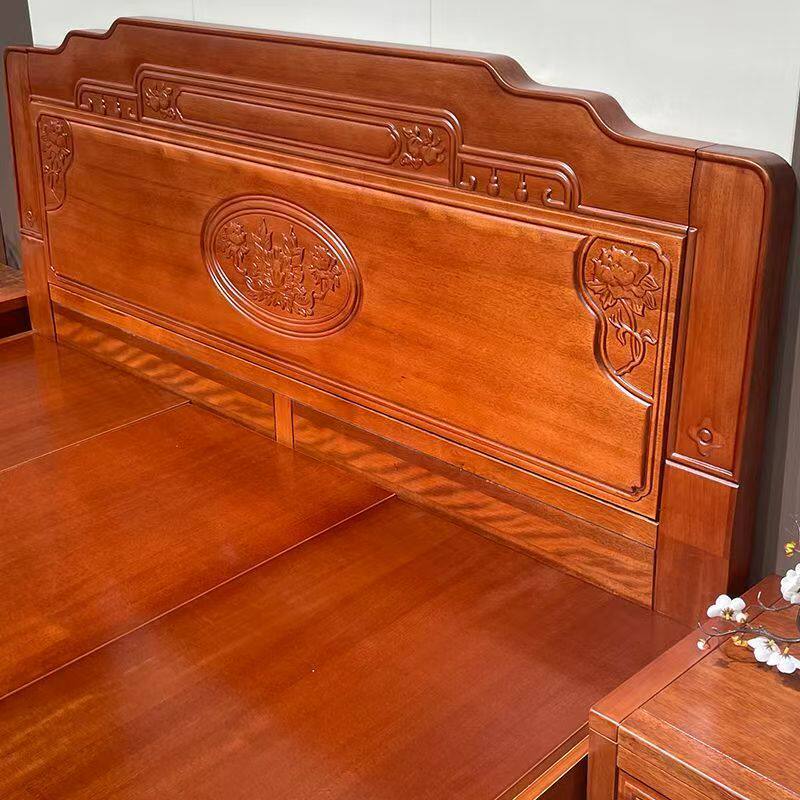 中式金花梨木实木床双人床1.8米榫卯结构古典雕花加厚工厂直销