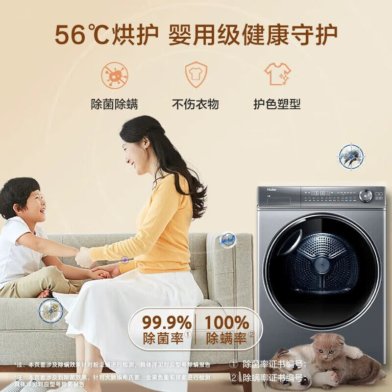 【自营】海尔云溪3.0热泵烘干机376冠军版双变频节能干衣机空气洗