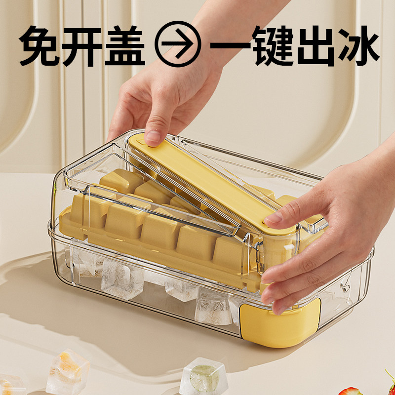 新食品级冰块模具按压冰格家用冰箱自制冰块储存盒带盖冻冰块神器