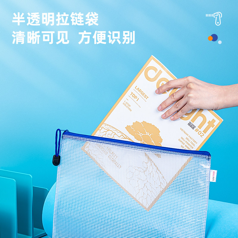 得力文件袋拉链式a4透明网格资料收纳袋学生用考试专用手提袋补习袋公文袋文件包试卷袋a5大容量防水塑料袋子