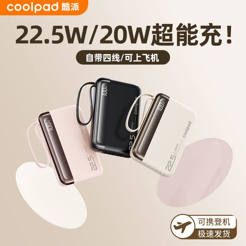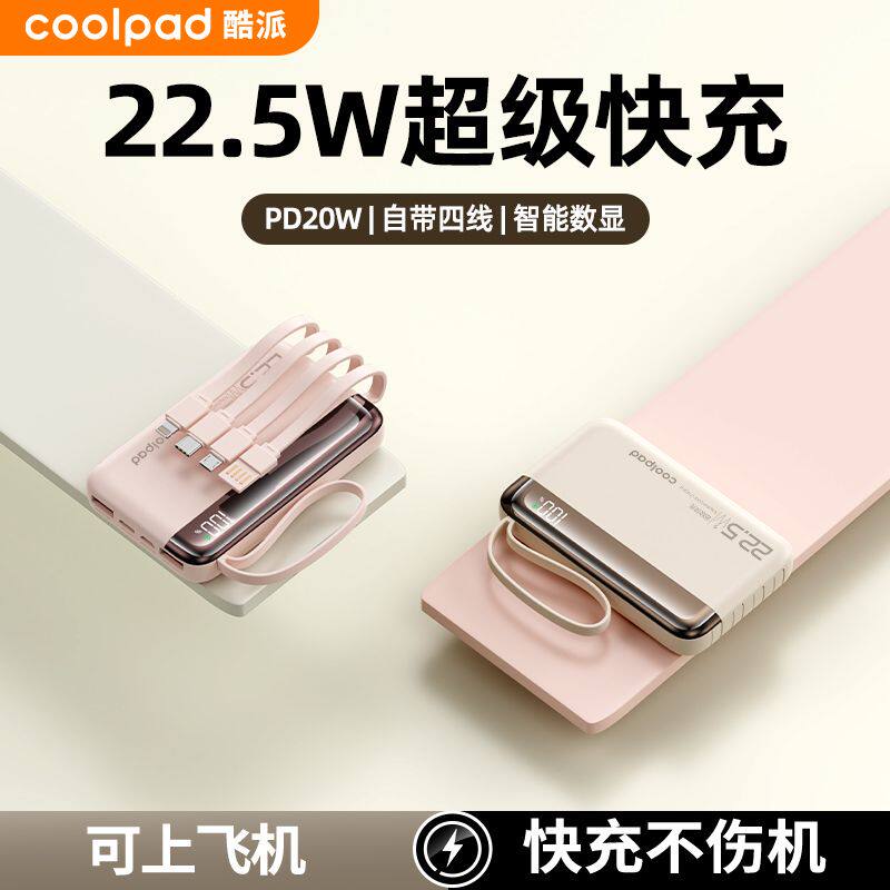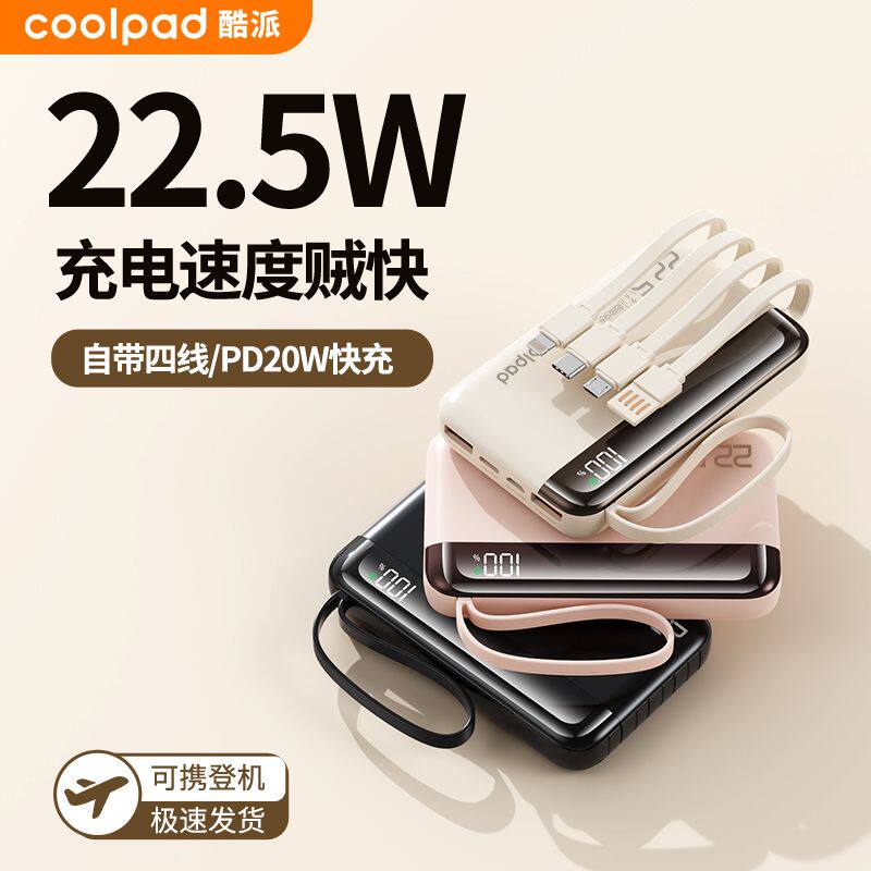 酷派自带线充电宝20000毫安快充22.5W大容量旅行移动电源手机通用