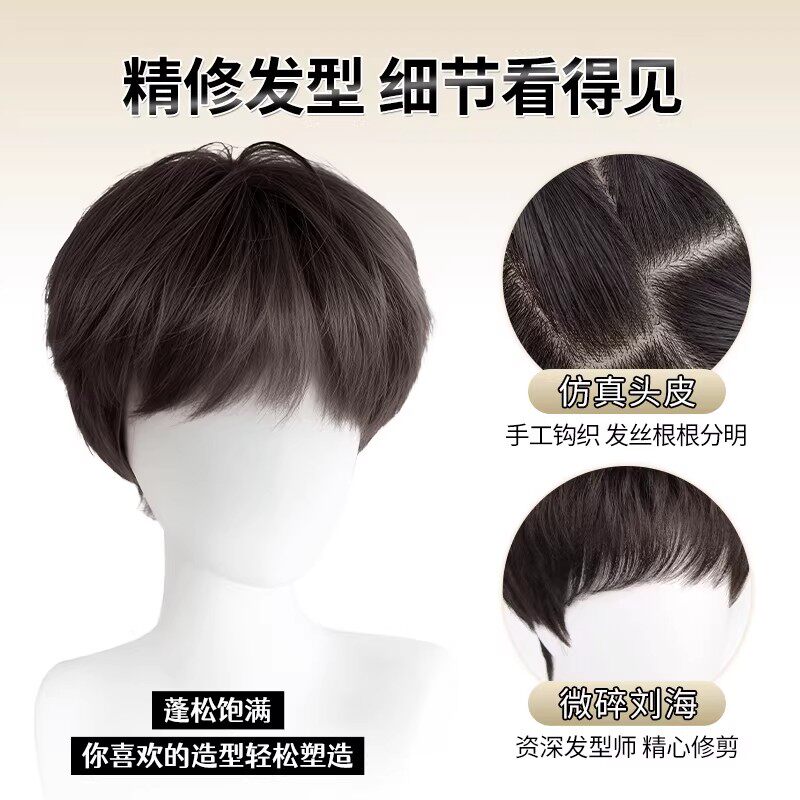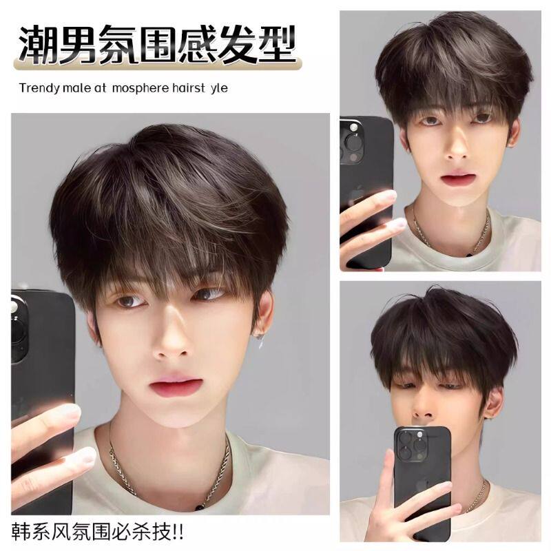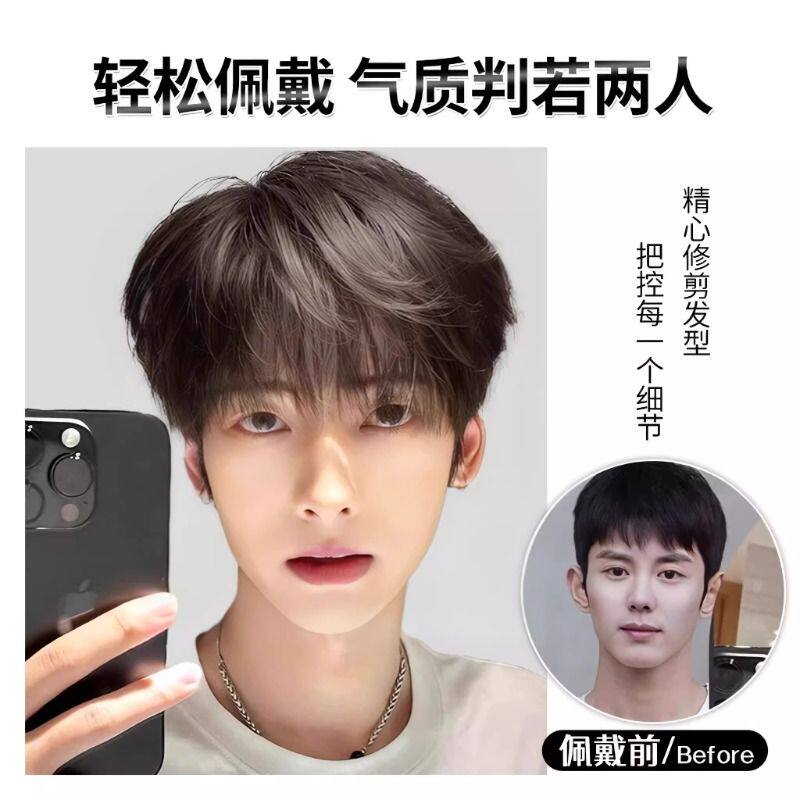 男士假发全头套日常韩式微分碎盖时尚短发造型蓬松自然整顶假发套