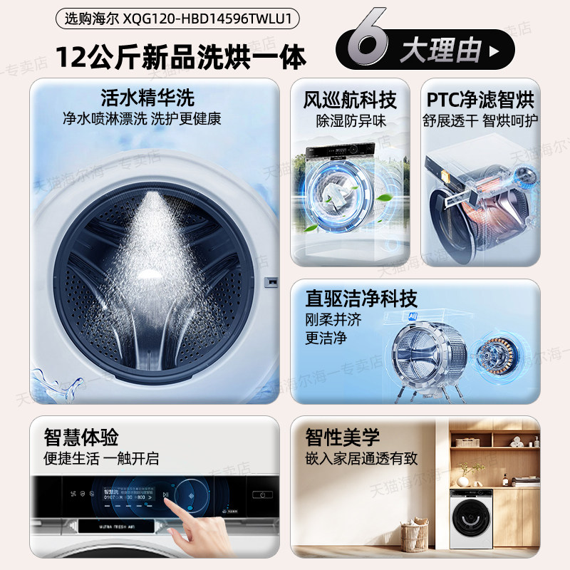 [换新补贴]海尔X11全自动12kg滚筒洗衣机直驱精华洗烘一体596旗舰
