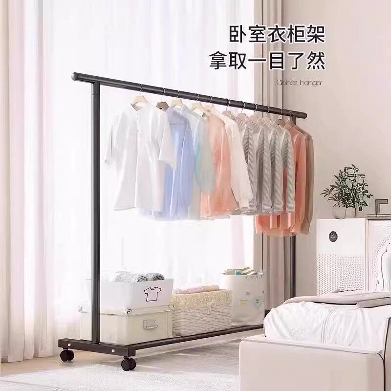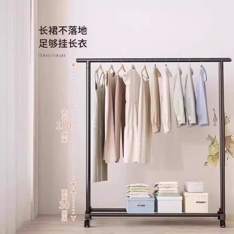 晾衣架落地家用可移动卧室凉衣架阳台挂衣服架子室内简易杆衣帽架