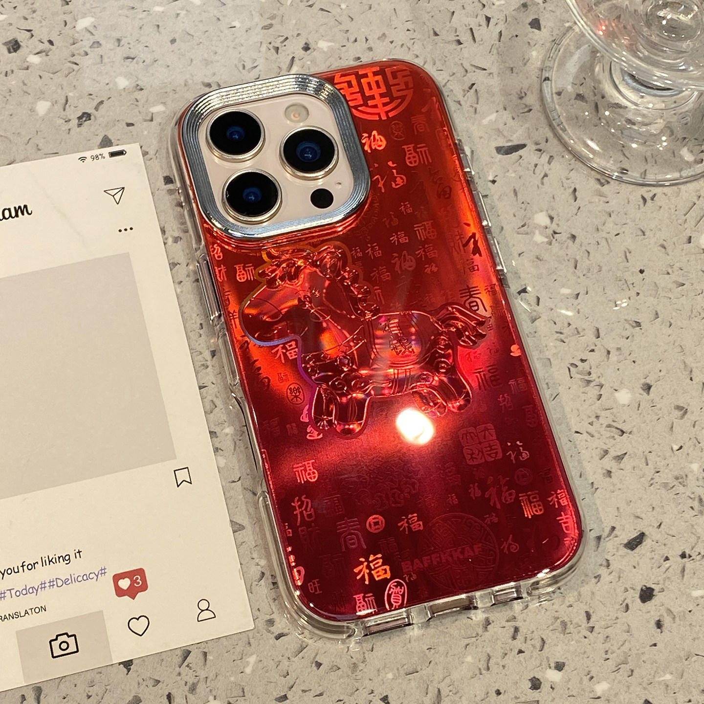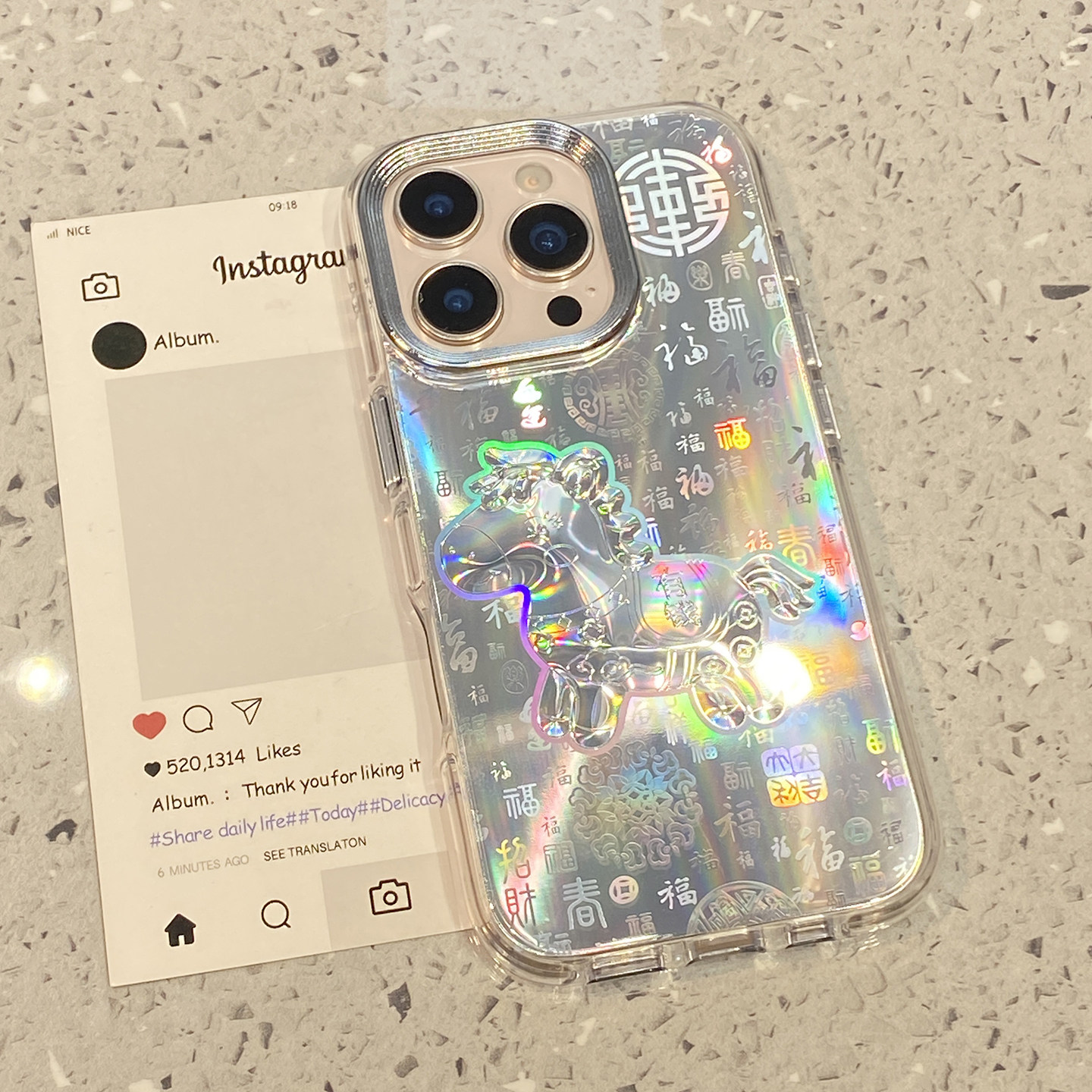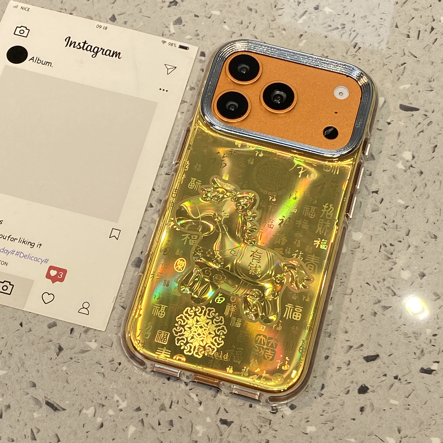 新中式百福图镭射小马适用于iphone17promax手机壳苹果15保护套14防摔13全包新款16pro马年max个性超火手机套