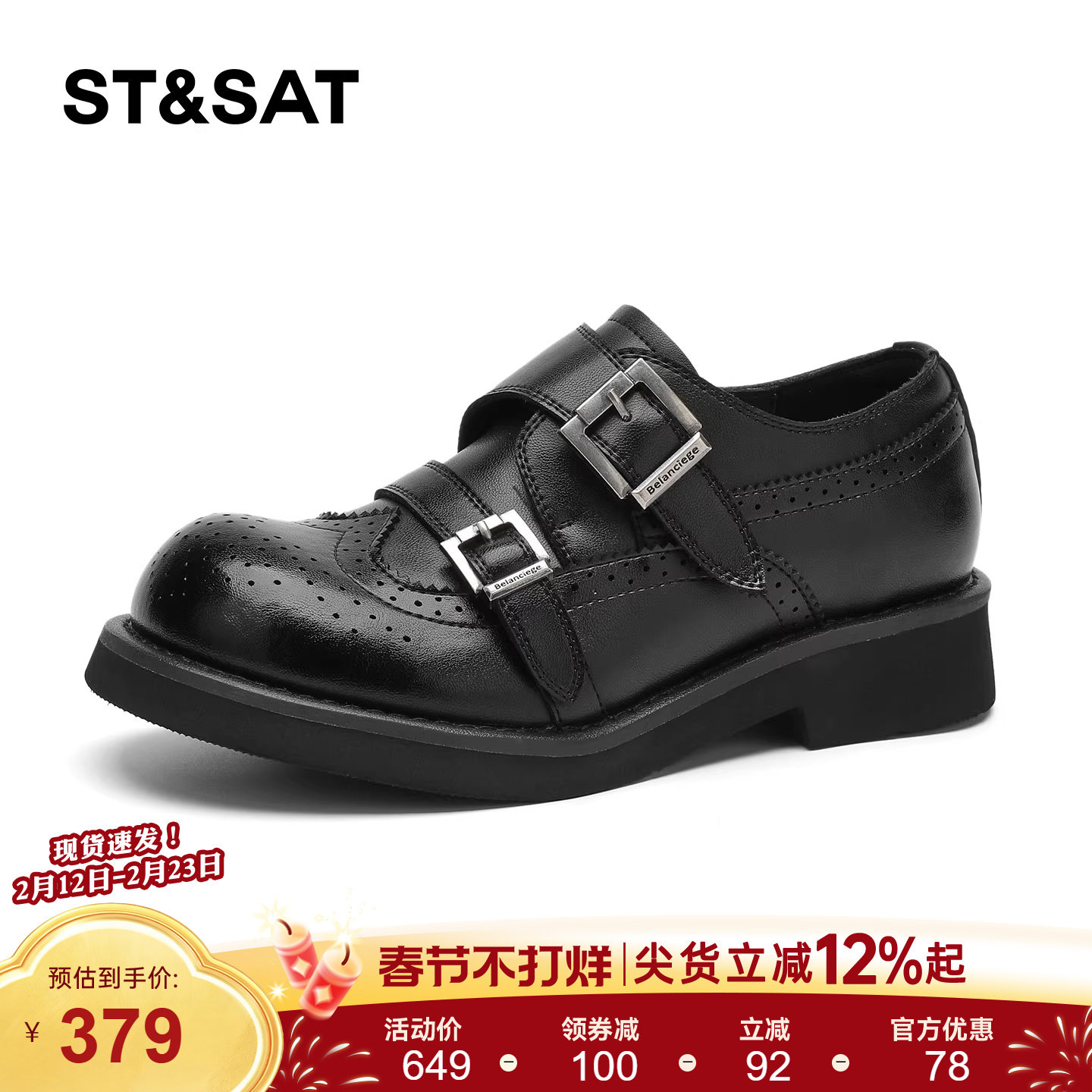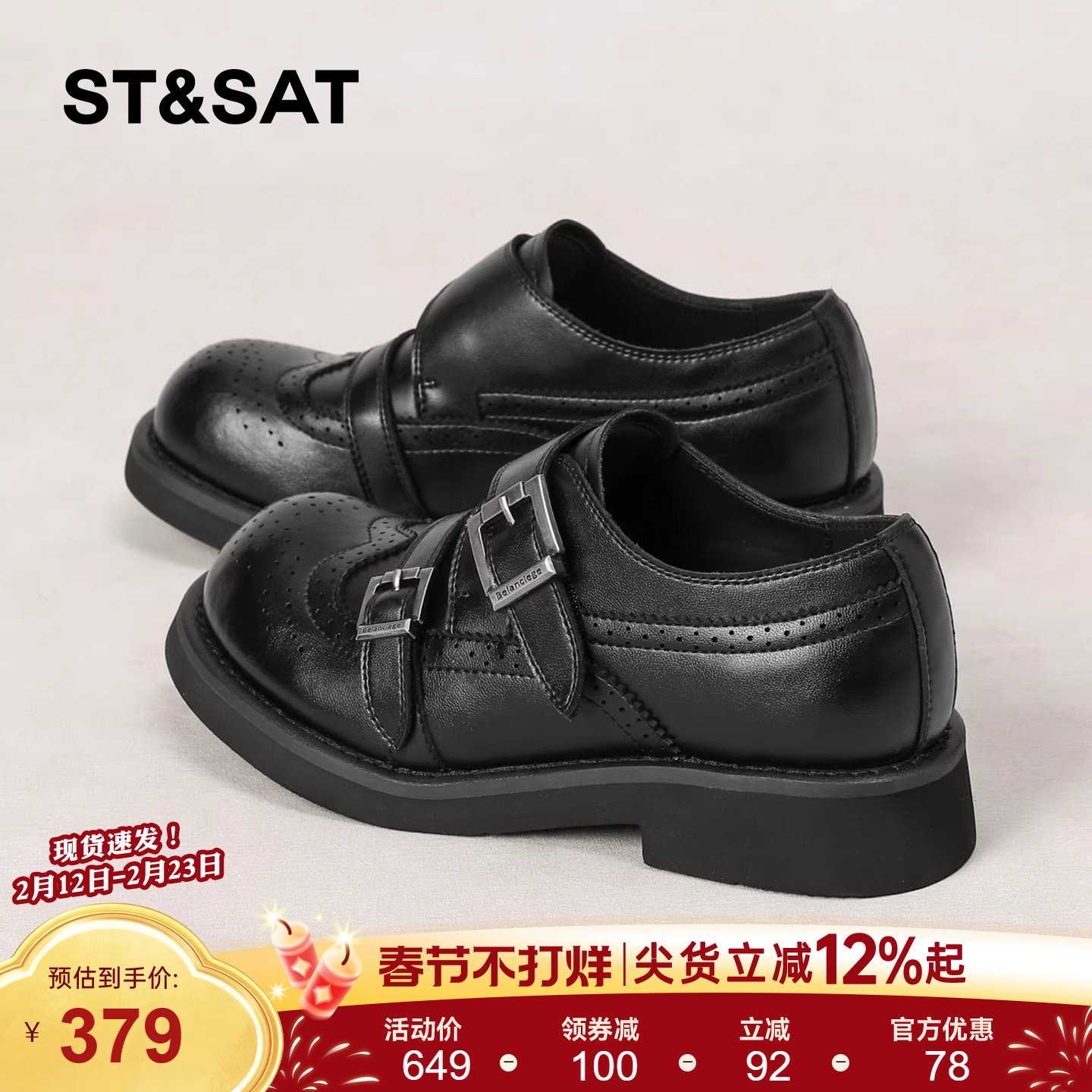星期六英伦风布洛克小皮鞋女2026年春季新款皮带扣复古粗跟乐福鞋