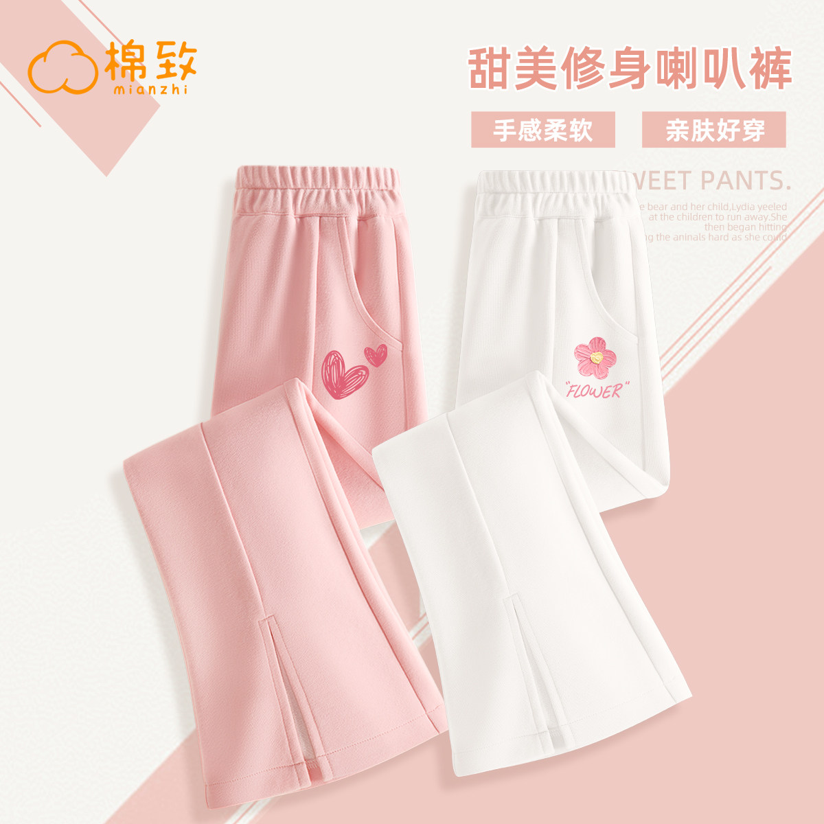 棉致童装女童喇叭裤2025春季新款儿童裤子春秋款白色微喇大童春装