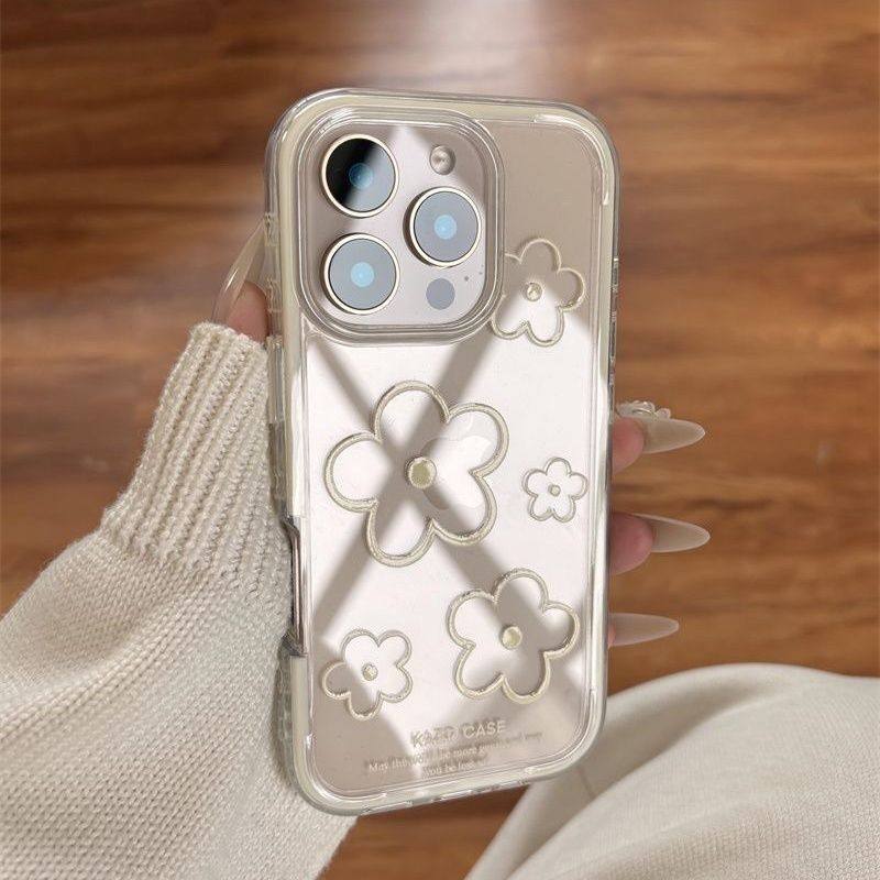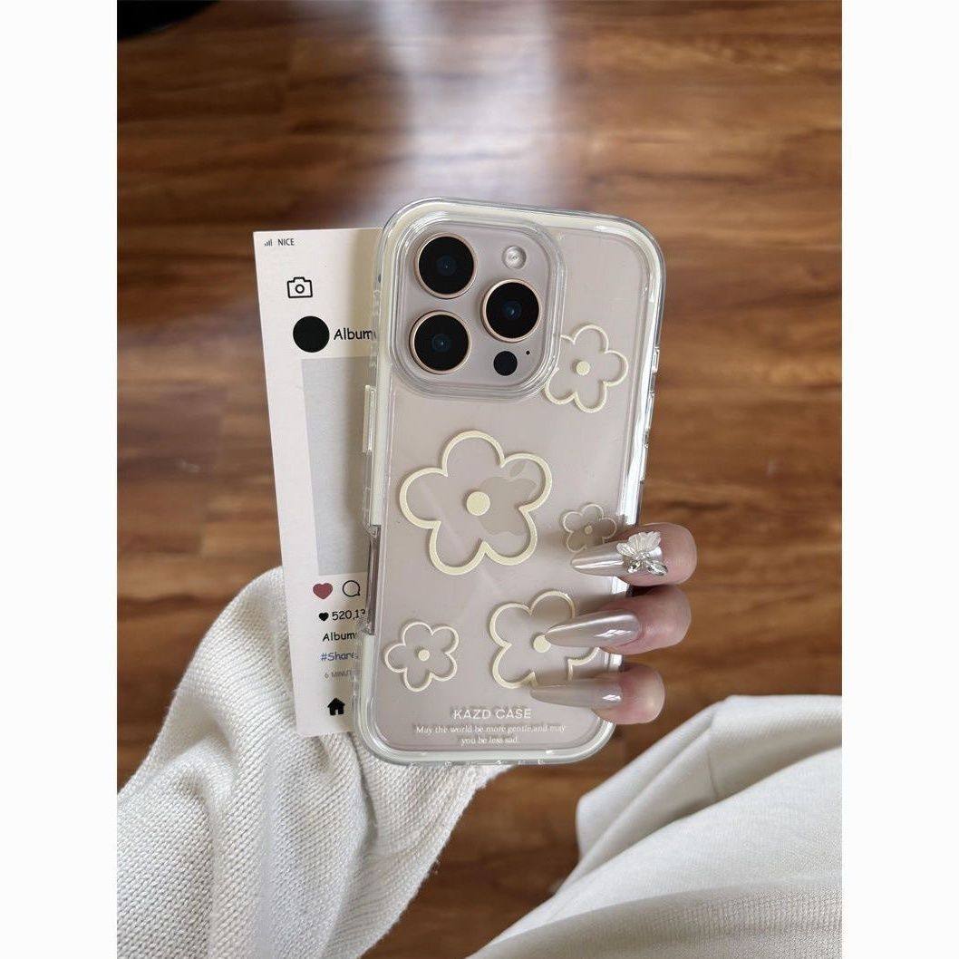 日韩个性线条花朵适用于苹果16promax手机壳iPhone17Air透明15plus大孔13软壳12保护套14简约11pro手机套