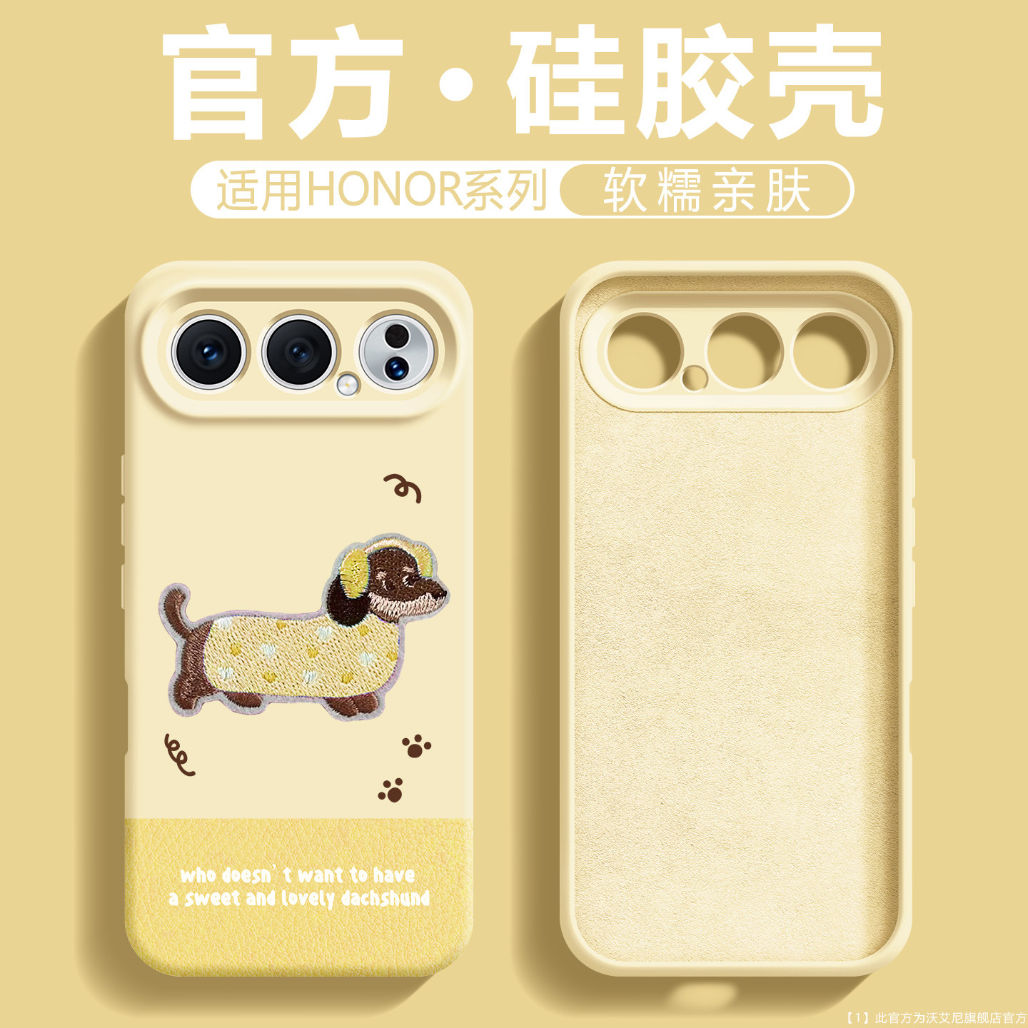沃艾尼适用荣耀500pro手机壳ins日韩500液态硅胶400pro腊肠小狗300植绒内里200镜头全包100防摔耐磨300pro潮