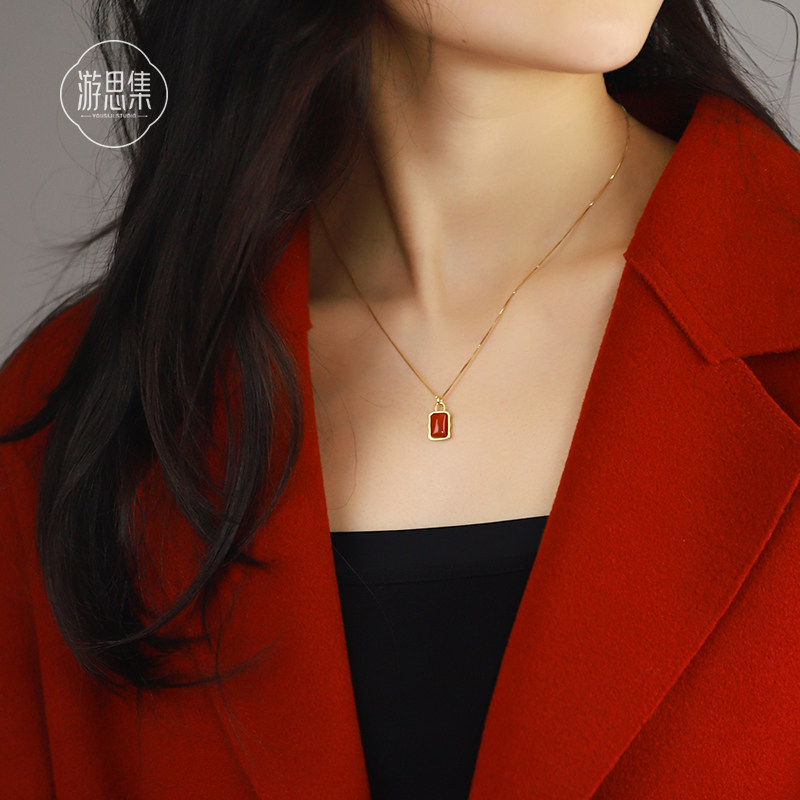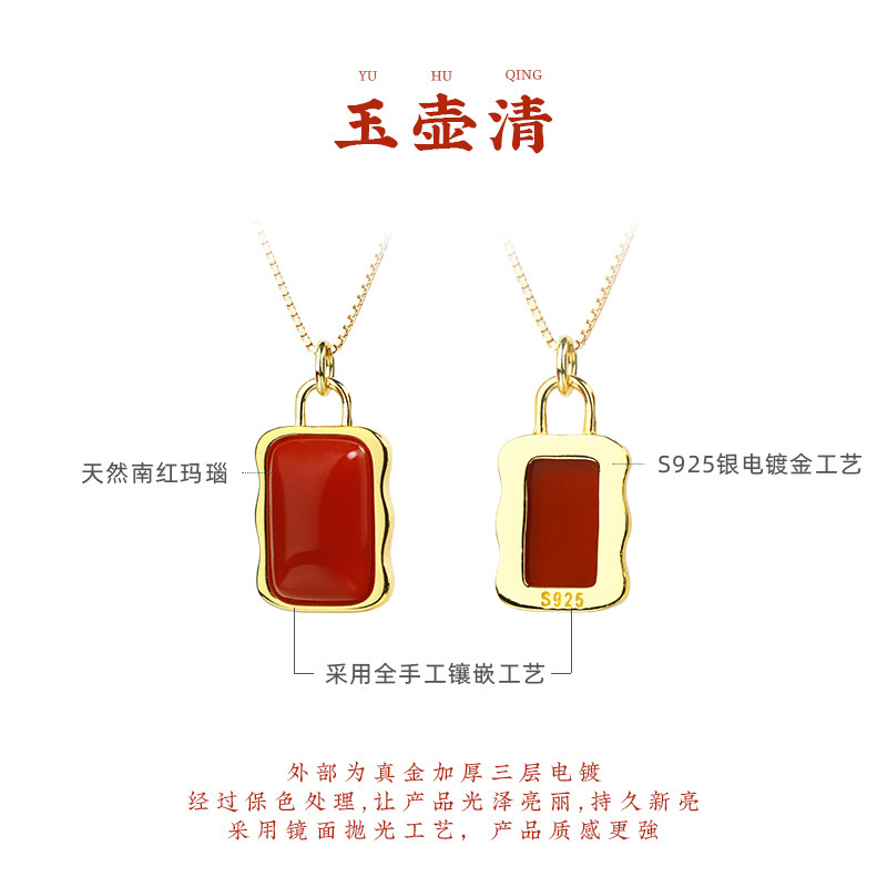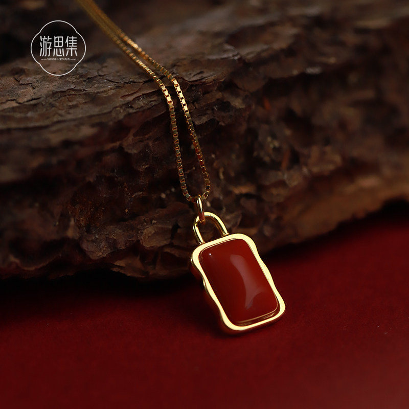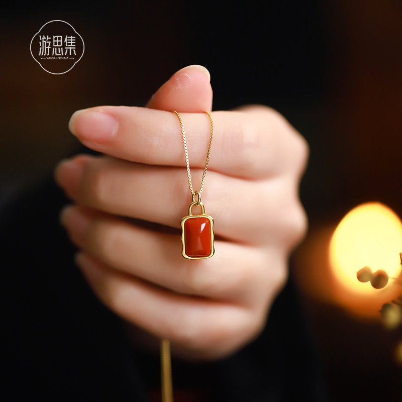 复古南红玛瑙吊坠项链女轻奢小众高级感精致锁骨链配饰新中式纯银