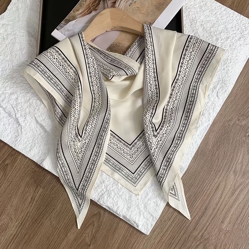 2025新款简约白色多功能披肩纯色极简菱形巾仿真丝斜纹凉感三角巾