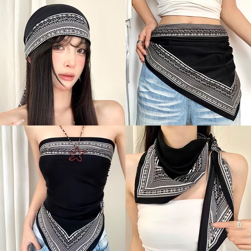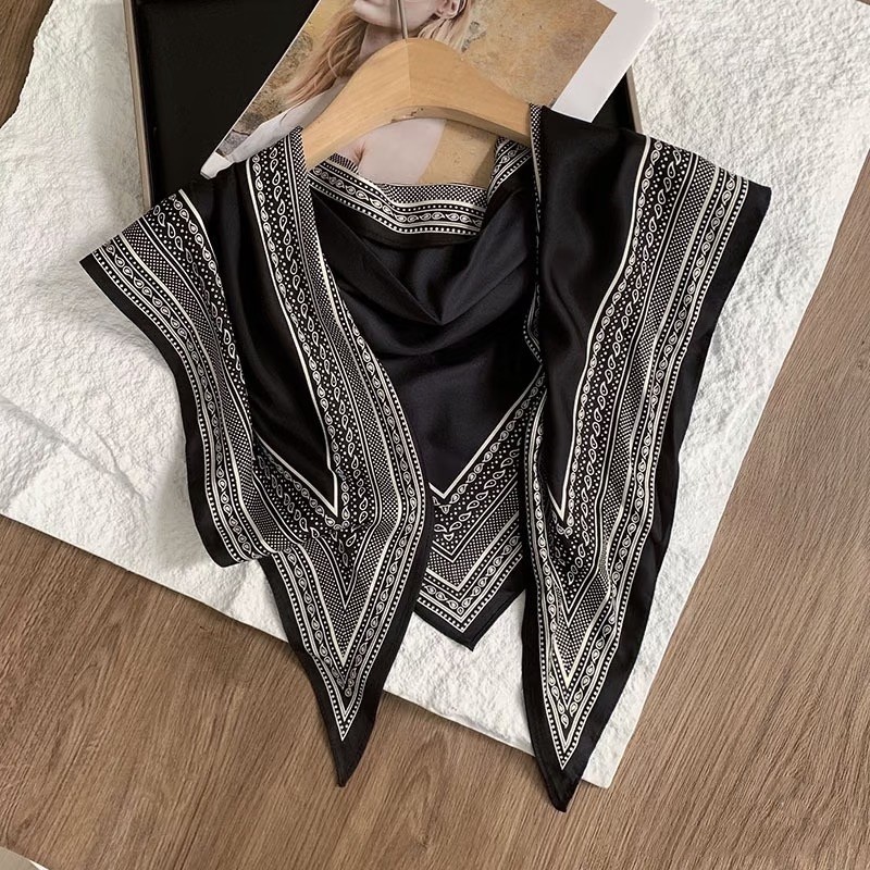 2024新款四季百搭长条小丝巾女薄款洋气高级黑白围脖领巾韩式围巾