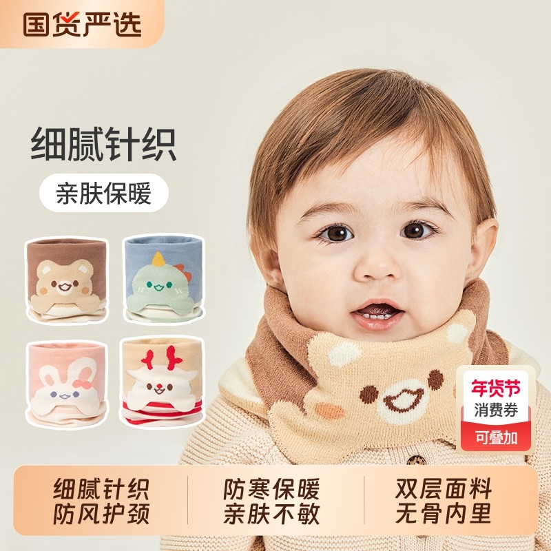 宝宝围脖秋冬季加厚保暖交叉围巾小月龄户外防风儿童可爱超萌脖套