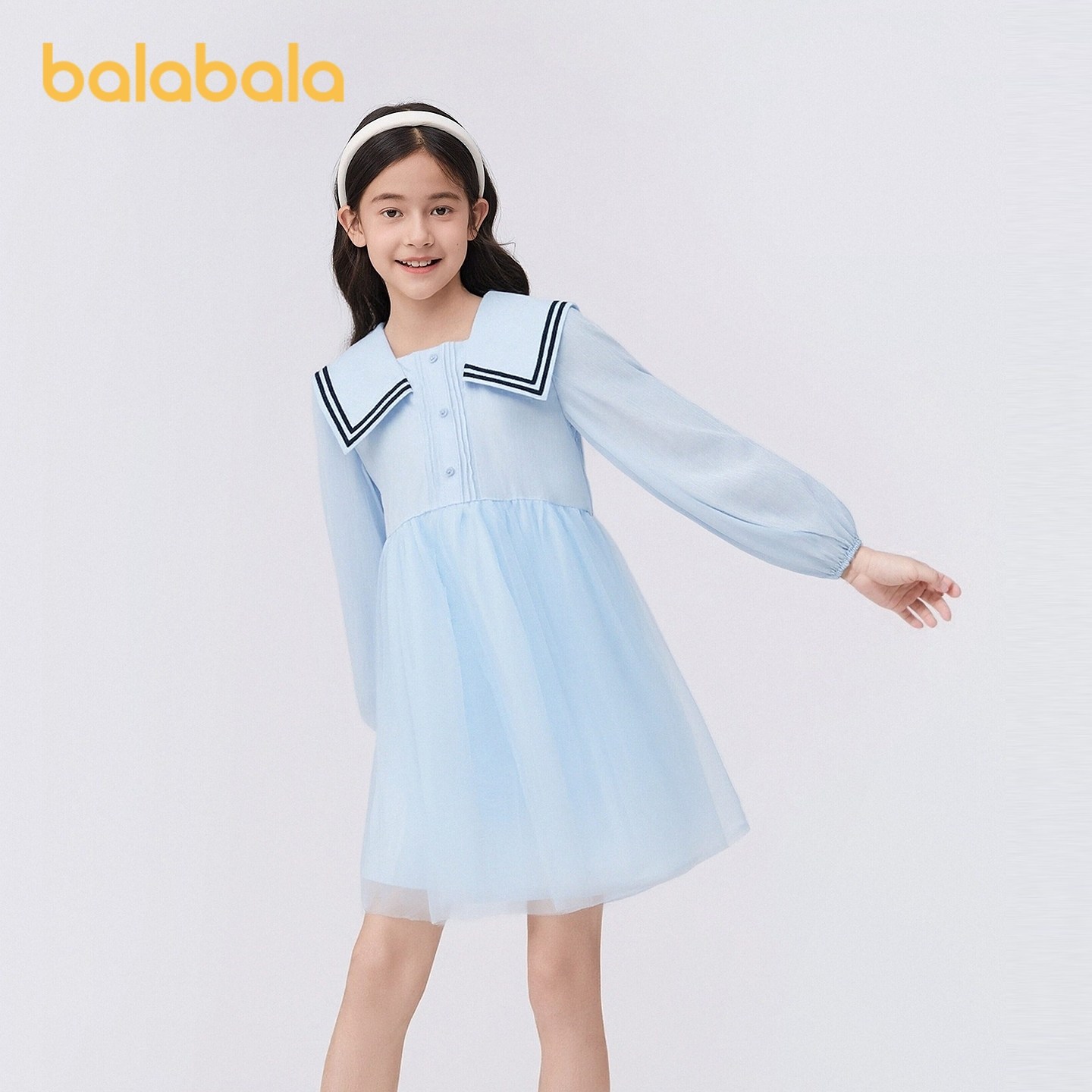 巴拉巴拉童装儿童连衣裙女童春秋装海军风衬衣裙撞色翻领裙子洋气