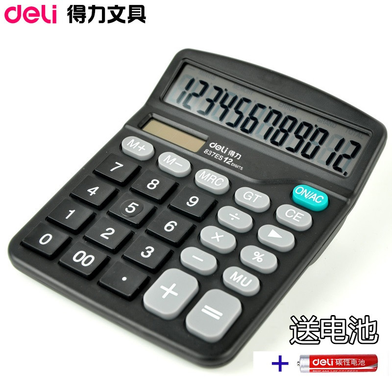 得力837ES计算机大屏显示12位双电源计算器太阳能送电池 12位 1654语音财务便携双电源商用计算机器