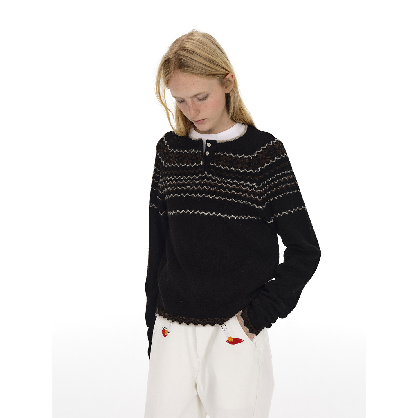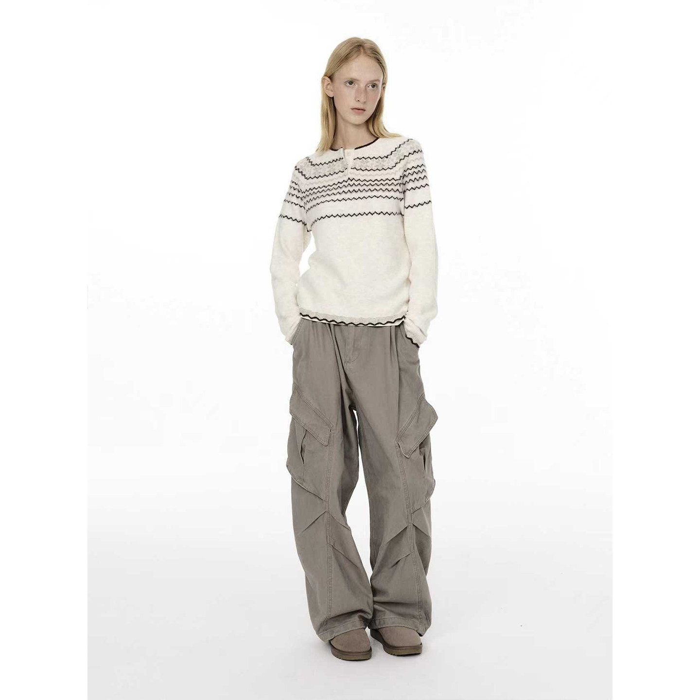 【入会立减20】CANOTWAIT 陈伟霆蜡笔提花毛衣开衫男女外套针织衫