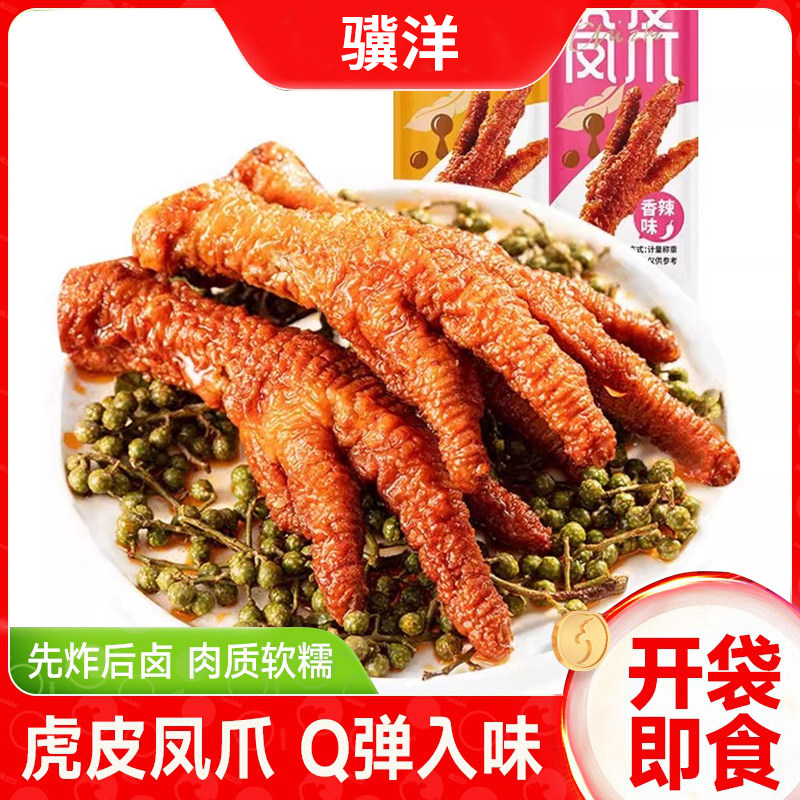 骥洋虎皮凤爪500g独立包装即食熟食卤味鸡爪爪子小吃零食散装卤香