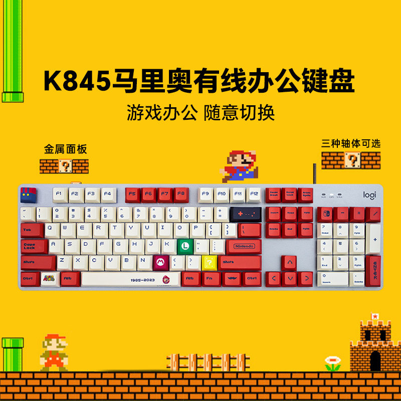 罗技K845有线机械键盘马里奥高达定制键帽G102鼠标游戏带背光