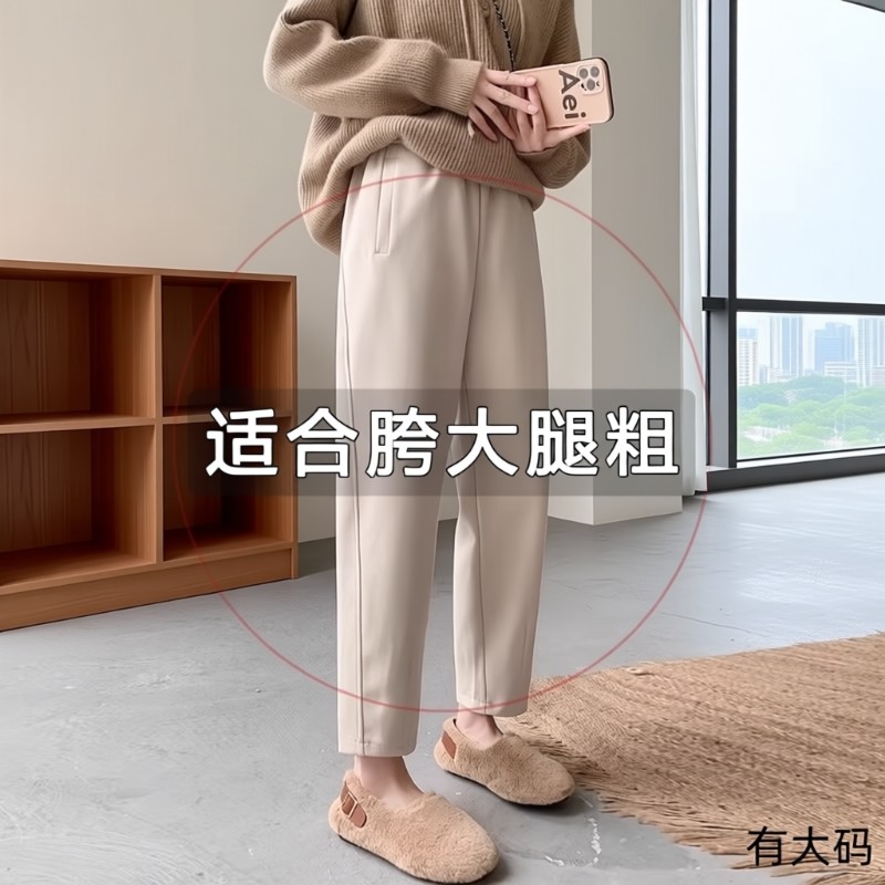 卫裤女高腰显瘦2025新款小个子大码胖MM九分宽松老爹哈伦裤子加绒