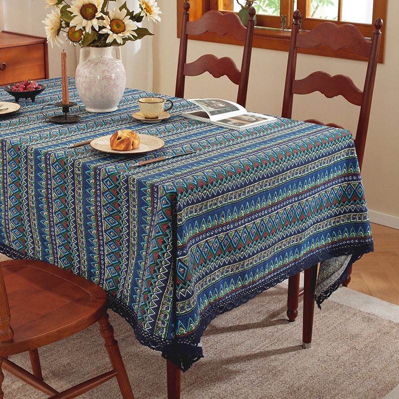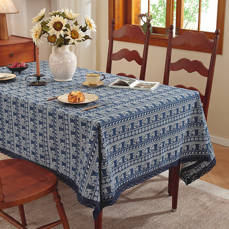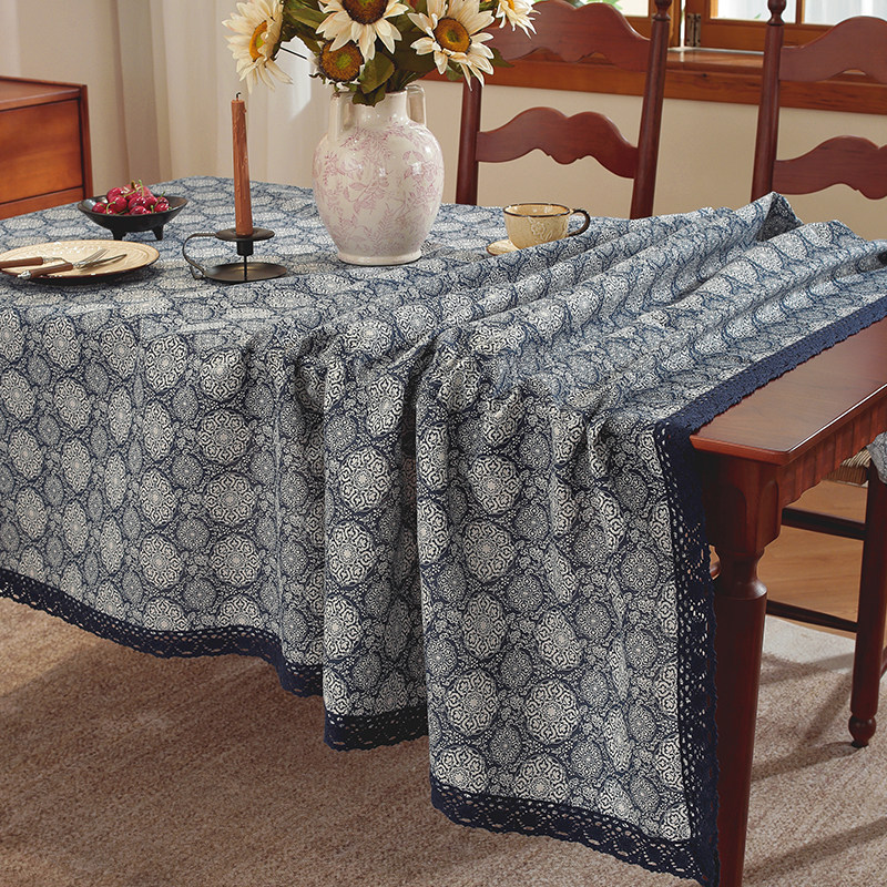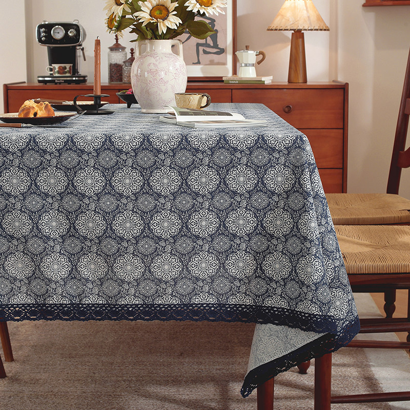 青花瓷复古新中式团圆纹样长方形书桌布餐厅酒店会议圆桌餐垫台布