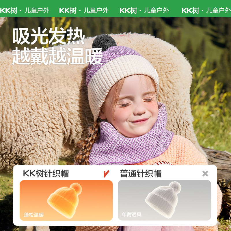 KK树儿童帽子男童女孩保暖针织毛线帽2025秋冬季新款户外防风围巾