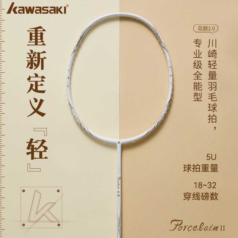 kawasaki川崎青花瓷花颜女羽毛球拍全碳素纤维成人单拍超轻单拍5U