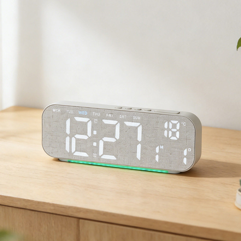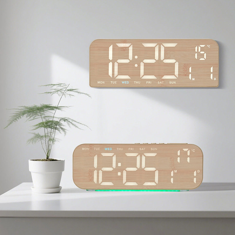 新款LED钟大屏幕闹钟简约木纹时钟创意钟表台钟可挂GH