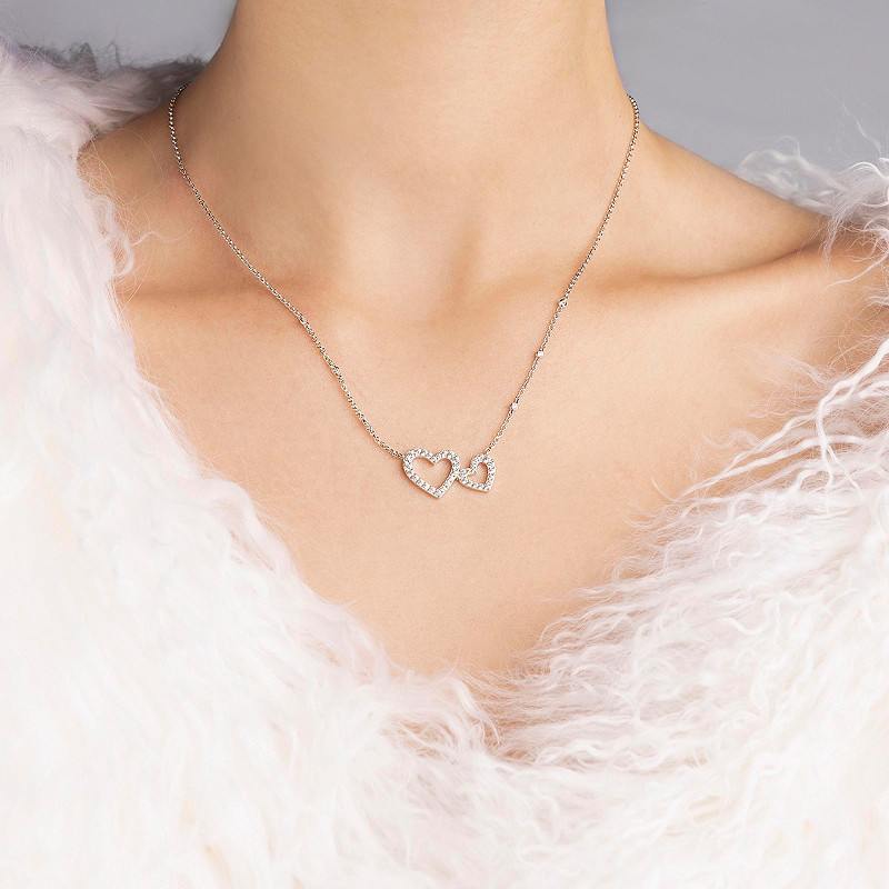 [杨紫同款]APM Monaco爱心可调节项链银白密镶心形镂空情人节礼物
