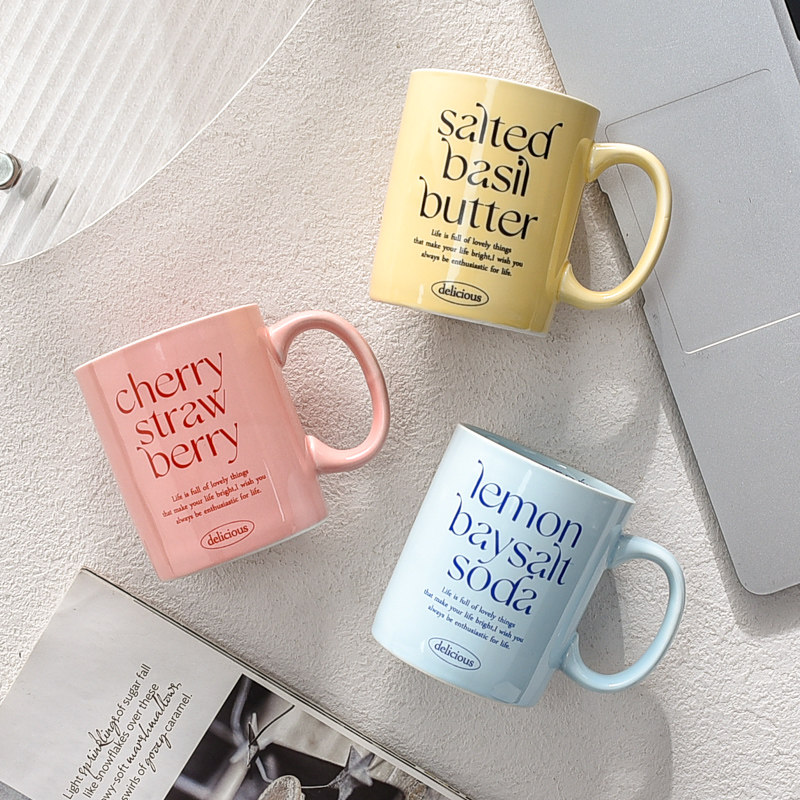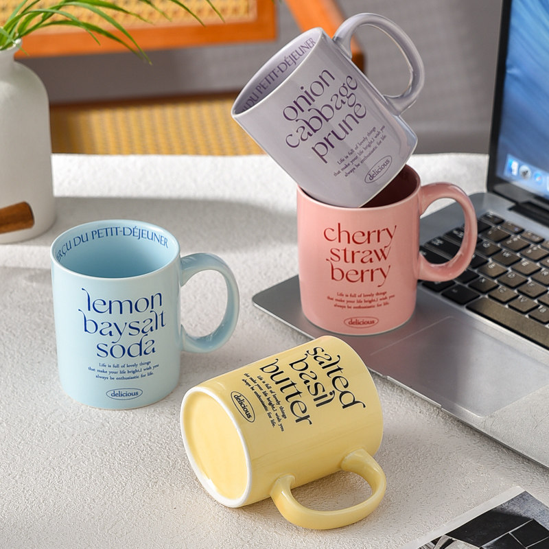 欧式彩色马克杯大容量冲泡杯早餐杯创意陶瓷字母咖啡杯家用牛奶杯