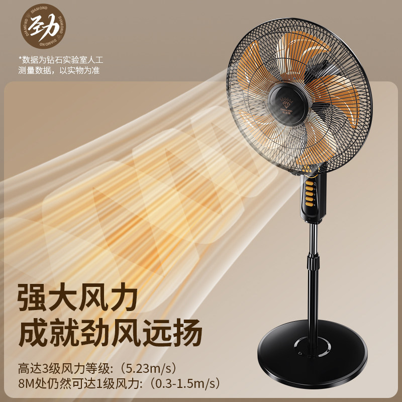 钻石牌风扇落地扇电风扇家用立式大风力2026新款电扇宿舍遥控轻音
