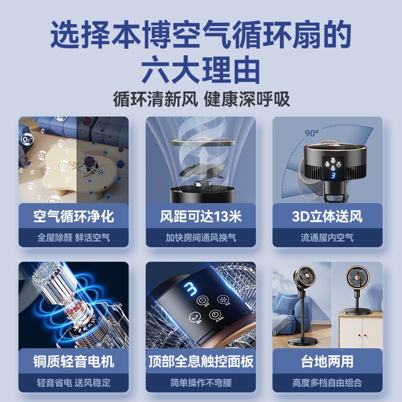 本博空气循环扇电风扇2026新款家用大风力轻音落地扇宿舍摇头风扇