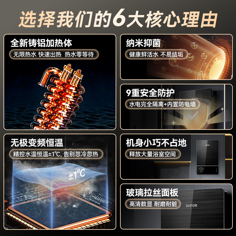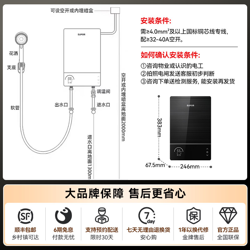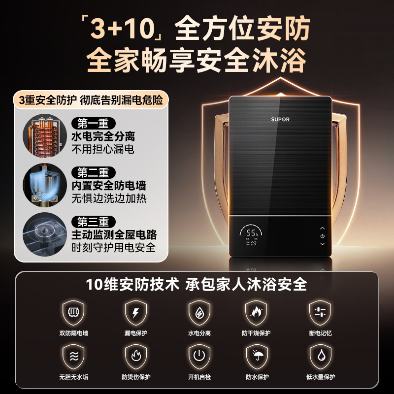 苏泊尔即热式电热水器家用小型卫生间洗澡专用电新型速热变频恒温